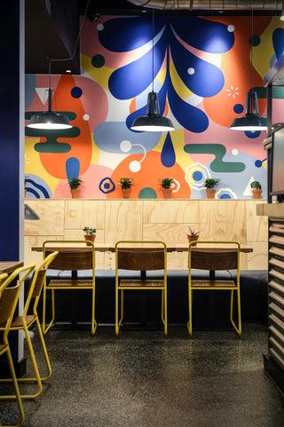 To create a fresh and contemporary feel, Backyard has an abundance of colourful walls, filled with abstract shapes. For a similar memorable and fun interior, your wall décor choices in a commercial space should not be neglected. We have a great range of decorative accessories at Peppermill Interiors to help create a unique wall display for your business, such as our Rustic Wooden Sign Range. On our website you can shop wall decor, mirrors, wine racks, vases and lots more. You can also see a selection of one-off decorative pieces in our 'Vintage' Decorative Accessories section.