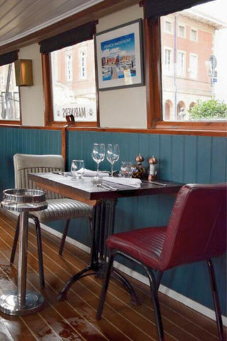 The independently owned restaurant, Bistro On The Quay, sits on the beautiful Ipswich waterfront and is known to be the perfect spot for a warm welcome and tasty European cuisine. Bistro On The Quay has an interior that simulates the inside of a boat and has a mix of coastal and industrial elements that experiment with Mediterranean blues and gold accents. Here’s how Peppermill Interiors’ furniture helped Bistro On the Quay achieve their interior desires!