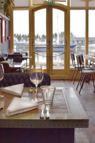 Bistro On The Quay also uses different types of metals to emphasise the boat-like, industrial themes. They have used the Zinc Edge Bar Table and the Copper Top Table which not only experiment with colour but texture. Both tables have subtle yet noticeable screw detailing that gives Bistro On The Quay a unique statement and makes room for the tables strong, sturdy character.