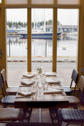 Additionally, Bistro On The Quay used Peppermill Interiors Princeton Quilted Dining Chairs in the colours Hickory Brown and Ash Black which tick all the boxes for style and practicality. The Princeton Quilted Dining Chairs have beautifully quilted, luxury leather upholstery and an industrial gunmetal frame. As shown in Bistro On The Quay, the Princeton can be mixed and matched to create a unique, sleek dining set up.