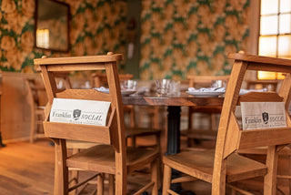 Franklin Social’s menus are folded as newspapers, with their logo on the front page which peeps over the top of the bible holders featured in our Chapel Chair range, producing a very fresh and original way to store your menus, as well as making your branding stand out from the crowd. Not only do the menus look great in the backs of the chairs, they are kept out of the way, lending more table space and eliminating the need for your staff to bring out and take away menus.