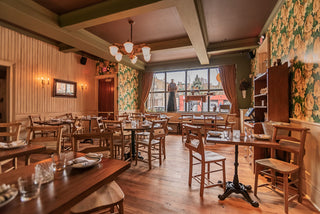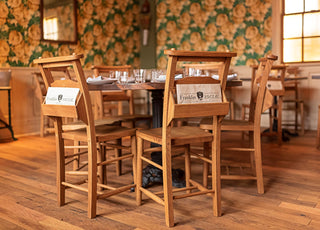 Filled with dim, warm lighting and hard shiny wooden surfaces, the colonial style of Franklin Social can be felt in every aspect of the interior design. The Reading Bar Stools are situated around the bar, and add a ton of vintage rustic charm to the space with their traditional design, visible grain and aged marks, which makes them the perfect fit for this particular bar area.