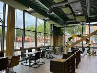 Jenno’s Coffee House, said to be the perfect spot for delicious coffee and tasty food, has a quirky interior that experiments with contemporary industrialism and subtle earthy elements. From the high ceilings with exposed pipes to the bright green and yellow walls with fresh tree accents, Peppermill Interiors’ furniture seamlessly blends with the aesthetic of Jenno’s Coffee House resulting in a beautifully curated ambiance that sets the tone for relaxing while catching up with loved ones.
