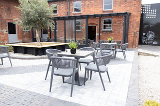 Recognizing the importance of an inviting outdoor space, Peppermill Interiors also supplied the Milan Square Pedestal Tables with matching chairs for LB’s outside area. These high-quality, water-resistant pieces are designed to withstand the elements while maintaining a stylish look, perfect for guests who wish to enjoy their coffee in the fresh air.