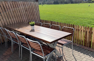 All three cottages sport pieces from our outdoor furniture collection. Both Knott Cottage and Afallon feature the super practical Valencia Outdoor Range, which are easy to store and clean. Spot one of our vintage window mirrors at Knott Cottage and watch sheep across the back garden at Maes Y Llan on our Sheffield Outdoor Patio Table.