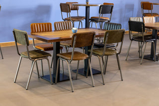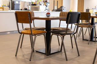 The Arlington Leather Restaurant Chairs bring understated refinement to Tamworth College's dining spaces, offering students and staff comfortable seating that pairs genuine, supple leather with industrial detailing. These chairs feature plush leather seats and backs with characteristic ribbed stitching that introduces a vintage edge, cultivating a welcoming environment where students want to linger and connect. The streamlined tubular welded steel frame provides strength and stability, crucial attributes for furniture in high traffic educational settings where pieces face relentless daily demands. Delivered fully assembled with plastic feet already fitted for floor protection, the Arlington chairs represent functional quality that enhances the dining areas while requiring virtually no upkeep.