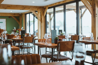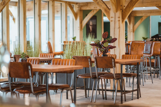 The use of natural tones and indoor plants across the The Arnage Restaurant, at The Motorist, alongside Peppermill’s Steamer Base Café Table with Pine Tops and Arlington Leather Dining Chairs in Tan achieve the perfect idyllic industrial oasis, for customers to dine in comfort and style. The Steamer Style dining range has a unique construction of pipework and is available in multiple sizes and at poseur bar dining height, the ideal commercial dining table option for a striking restaurant interior.