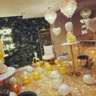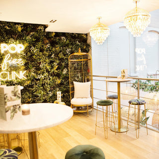 Upstairs The Posthouse have created a private oasis, featuring a living wall, neon sign, chandeliers and gold-plated furniture. Peppermill’s Ivy Velvet Upholstered Bar Stools take pride of place in the space. Their velvet upholstery against the gold-plated steel hairpin legs are a lovely contrast to each other. They are a sleek Scandi inspired piece and a great option for contemporary interiors and spaces. The Ivy stools are available in four sultry colours: Black, Cool Grey, Ocean Teal and Pine Green. The Posthouse have expertly mixed and matched the colours available to create a delicate, tasteful appearance, one which does not look too flamboyant but remains playful.
