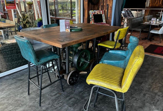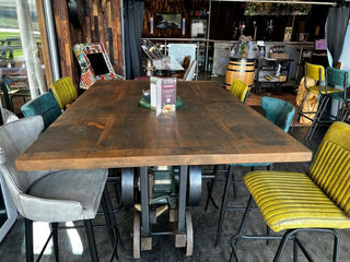 Grab yourself a seat at the striking Industrial Engine Bar Table which can comfortably fit up to eight people. This is a rare piece of furniture, but we offer several industrial style tables, so it's always worth taking a look in our vintage category.