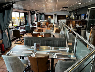 The fresh and modern restaurant area displays a vast selection of Peppermill’s seating, including the Nelson, Admiral and Goodwood dining chairs and the Nottingham Dining Bench. Their hard wearing, durable material enables easy cleaning and reduces risk of scuffs or tears, making them the perfect choice for restaurants and bars.