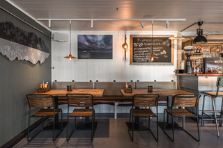 To provide a little bit of elevated seating for their guests, Tobiasbrygga opted for our Sheffield X-Frame Poseur Table with a pine top. Paired with our Arlington Leather Breakfast Bar Stools in Matcha, this seating area has a stripped back appeal that still prioritises comfort. Tobiasbrygga also picked a range of High Pedestal Tables with an oiled top.These tables fit perfectly around their fixed seating and our Tan Arlington Stools.