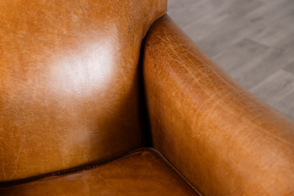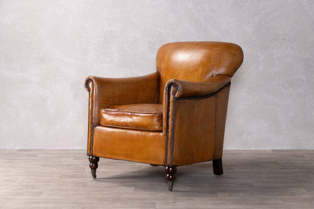 Upholstered in distressed leather material, our Lansdowne Vintage Style Tan Leather Armchair is a thing of beauty. Classic and comfortable, the traditional design and antique style castors will bring a little vintage charm to your aesthetic.