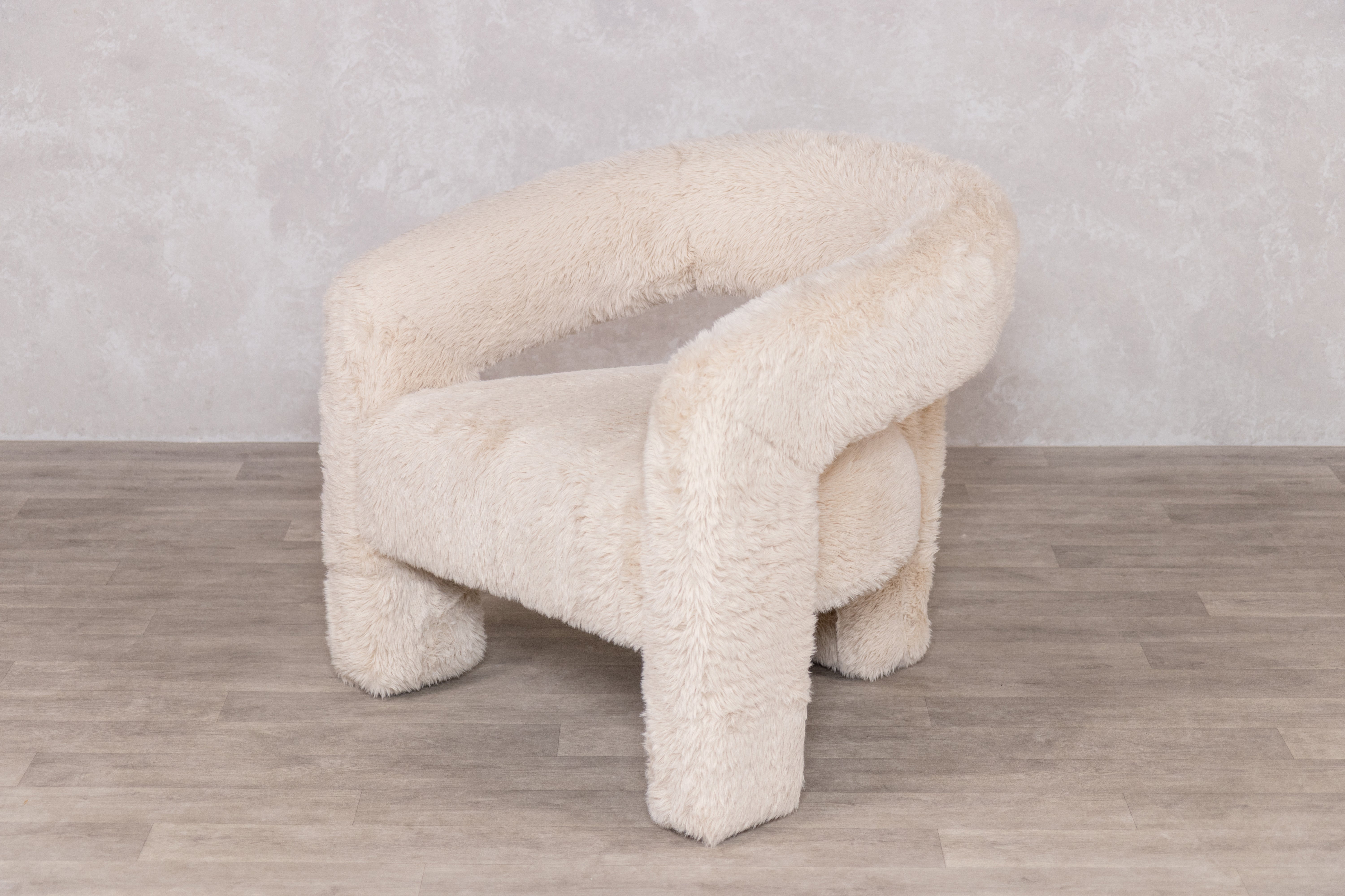 The Toulouse Faux Fur Accent Chair features a modern sculptural design with a unique silhouette that brings a bold and stylish presence to your living space. Its fully upholstered construction in plush faux fur fabric offers exceptional comfort, while the inviting shape creates a cosy focal point perfect for relaxing or entertaining. This statement piece seamlessly blends contemporary form with luxurious texture, making it an ideal addition to bedrooms, living rooms, or reading nooks.