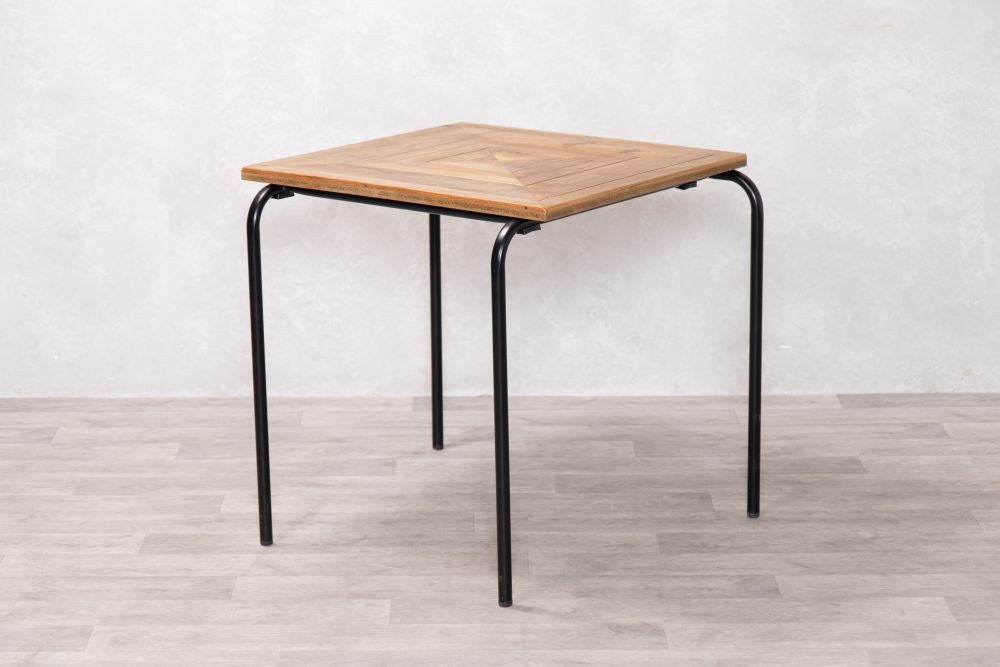 The table can also be purchased with a teak top, which is suitable for outside use, too! Trying to be a more sustainable business? These tables are made in the UK from reclaimed woods, the ultimate eco-friendly restaurant table!