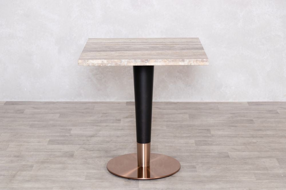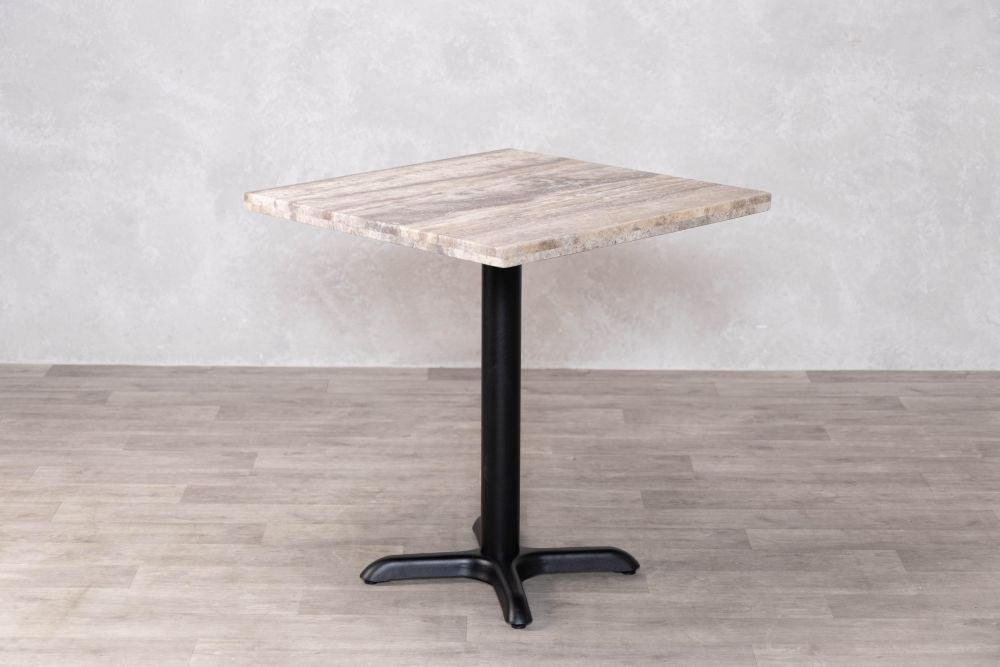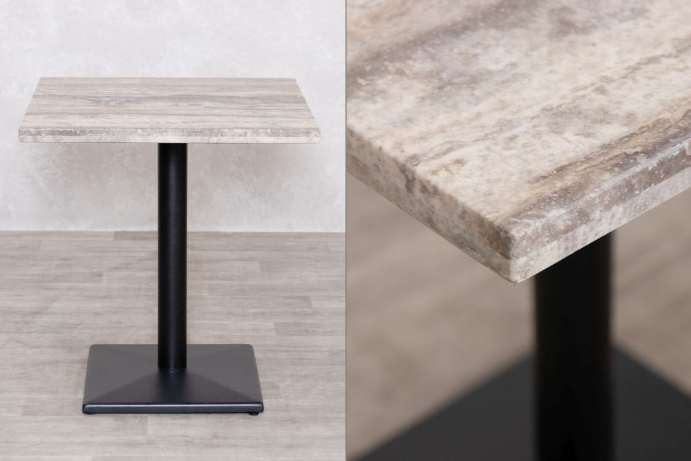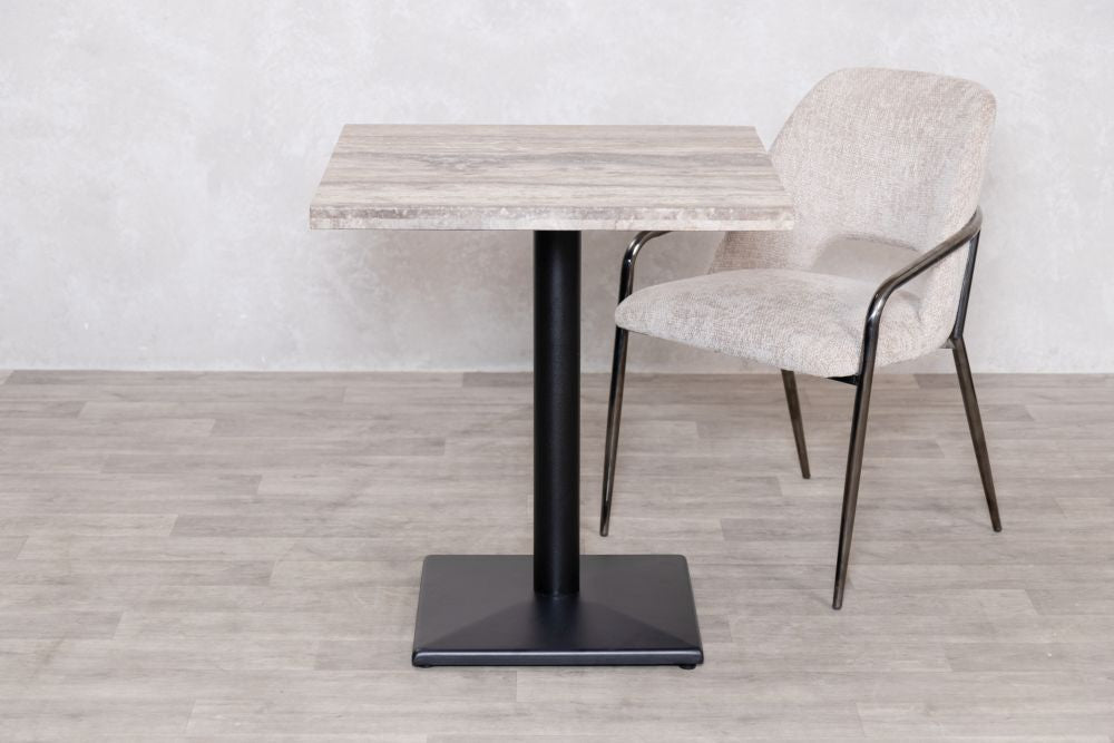 The Travertine Top Square Café Table Range combines natural beauty with lasting durability. Featuring stylish travertine stone tops, that are made of natural limestone formed over years, each table showcases unique patterns and textures that add a refined, contemporary look to any commercial space. With a choice of various hardwearing bases, these tables are perfect for cafés and restaurants. The sleek, modern design complements a variety of interiors while the sturdy construction ensures it stands up to daily use. Travertine’s timeless appeal and practicality make these tables an excellent choice for high-traffic areas.