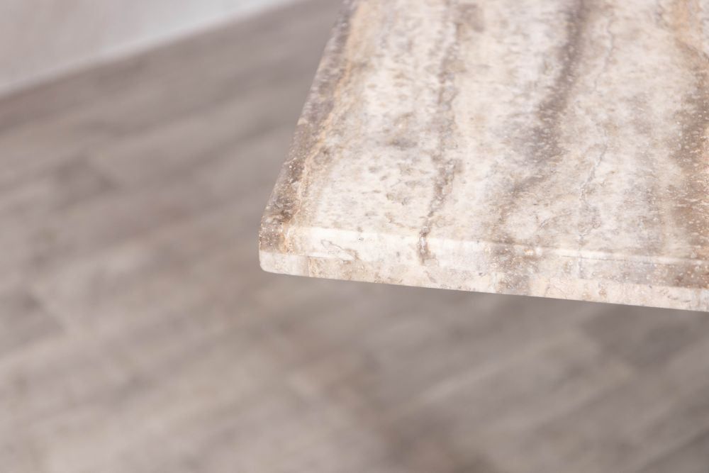 Travertine is a natural material; across each piece you will be able to see and appreciate the unique markings and colours. These natural features enhance the beauty and individuality of your furniture, they should not be considered as imperfections.
