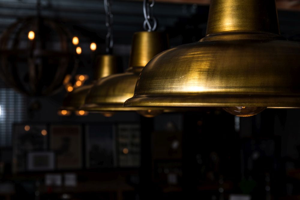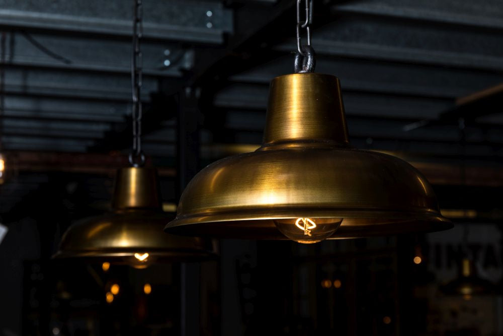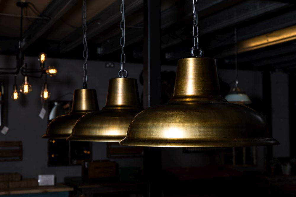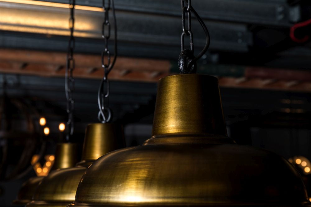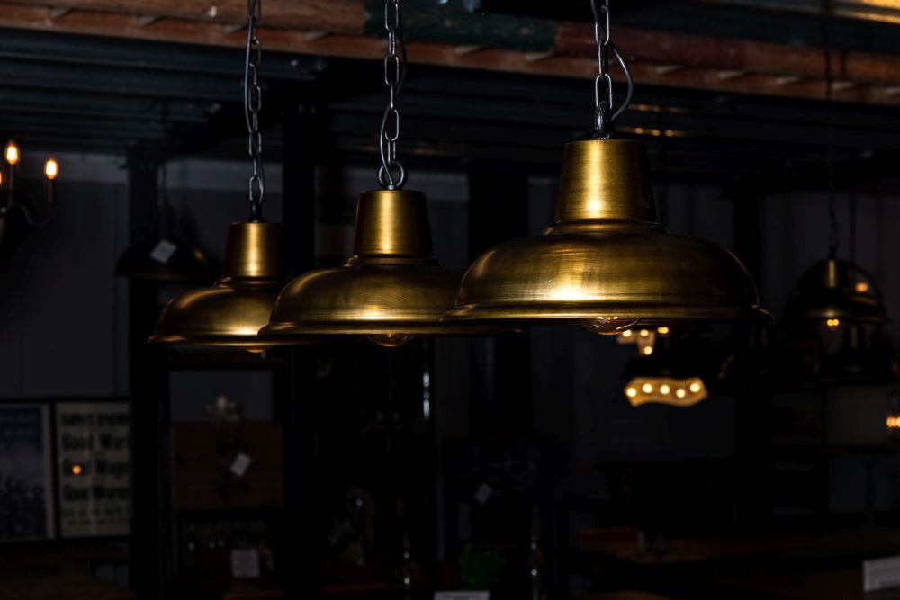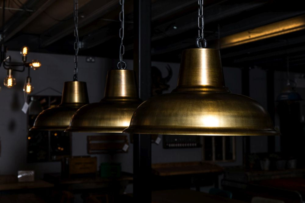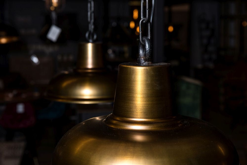 Looking to add a bit of an industrial edge to your breakfast bar or dining room table? Our Orion Pendant Light has an aged brass finish, with a black chain.