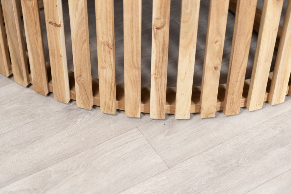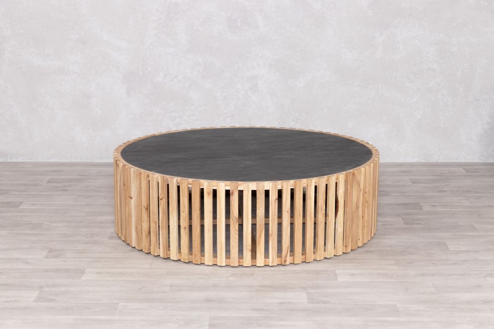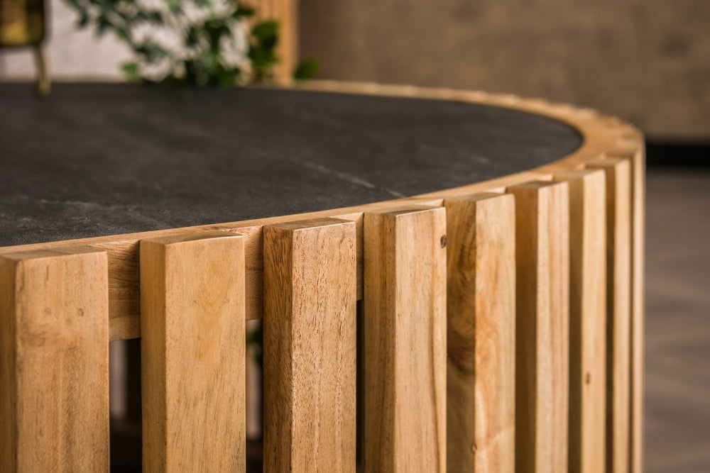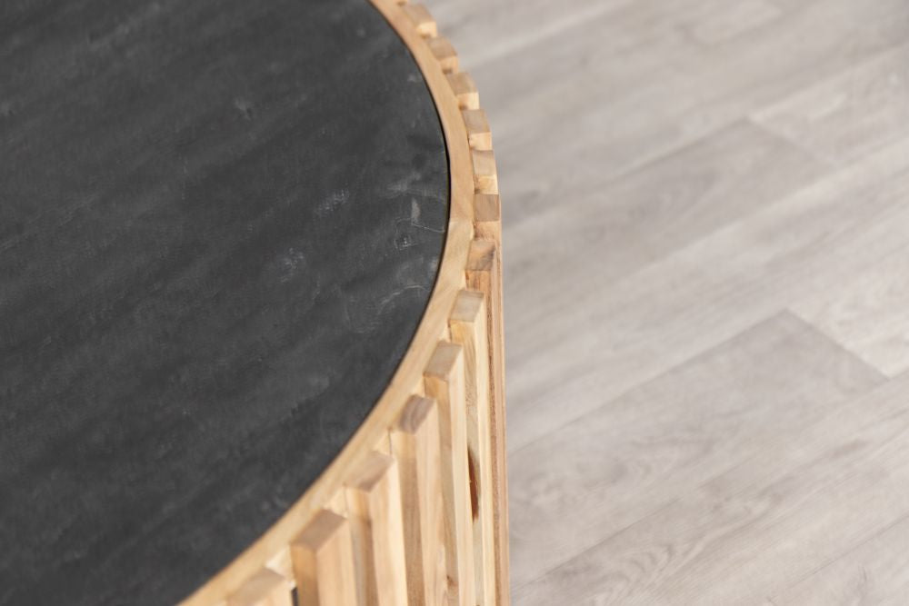 The Melbourne Slatted Coffee Table masterfully marries elegance with functionality. Its sleek slate top, engineered for lightweight durability, rests gracefully on a slatted Acacia wood frame, creating a harmonious blend of natural warmth and organic materials. The meticulous design highlights the inherent beauty of both materials while ensuring everyday functionality. Each table is unique, featuring distinct variations in the slate and wood, making it a one-of-a-kind addition to your living space. Built to endure and effortlessly stylish, this versatile coffee table is destined to be a timeless centrepiece in any home.