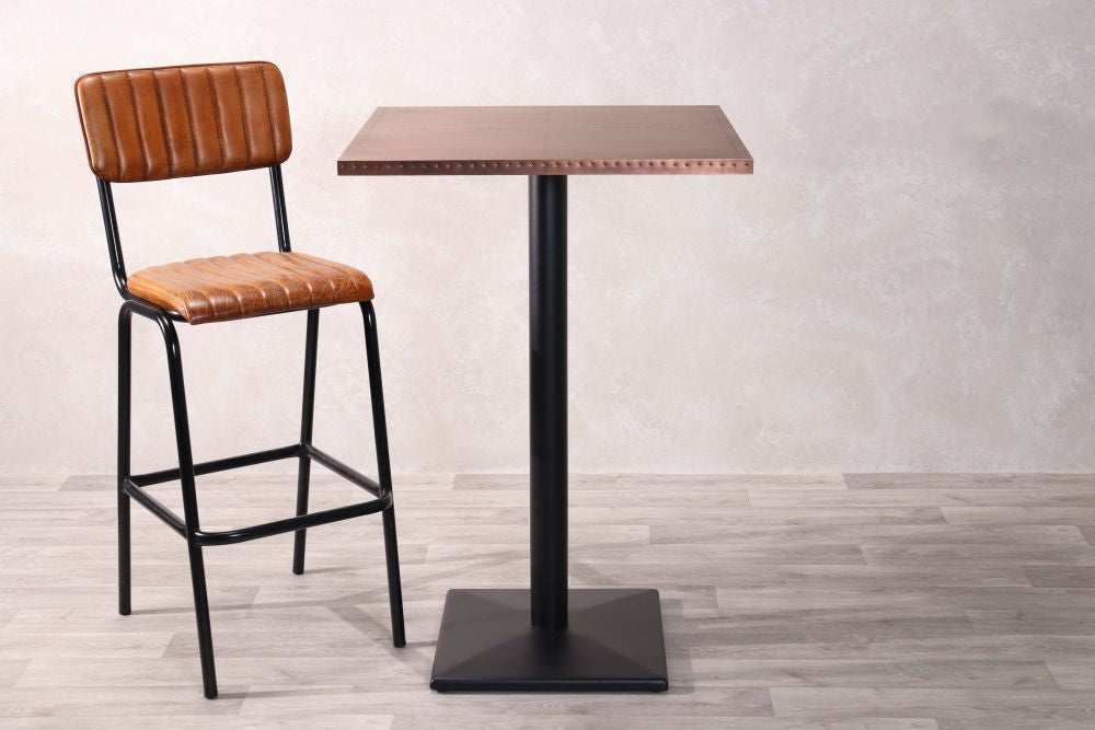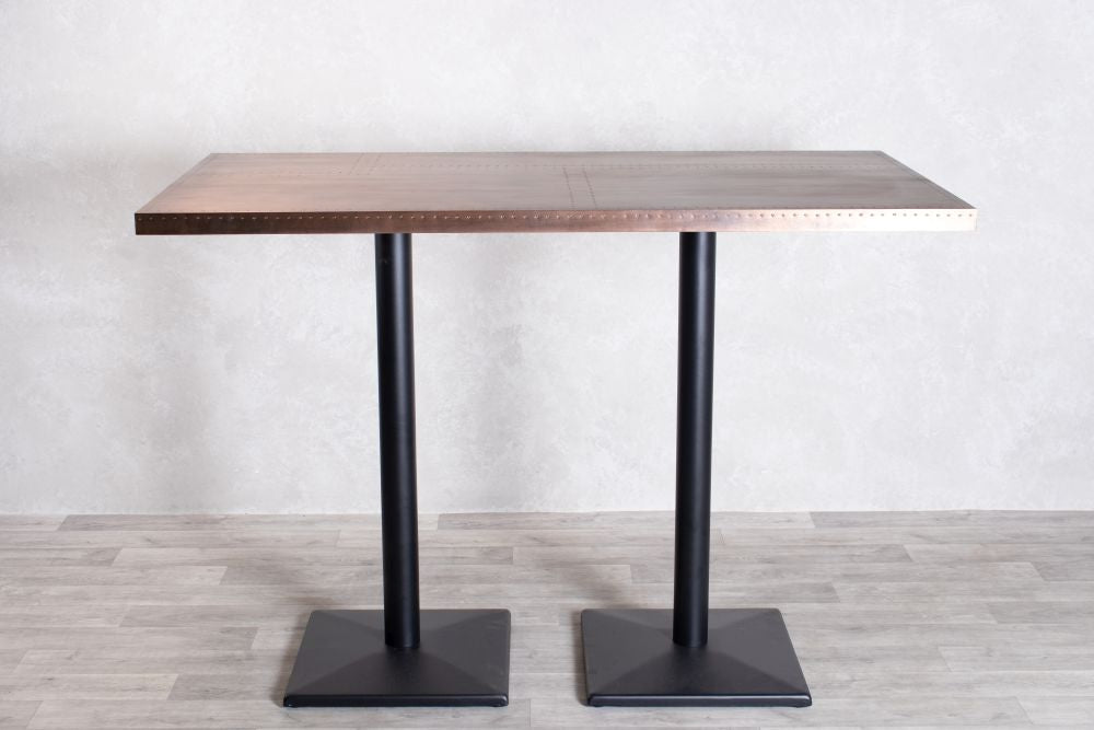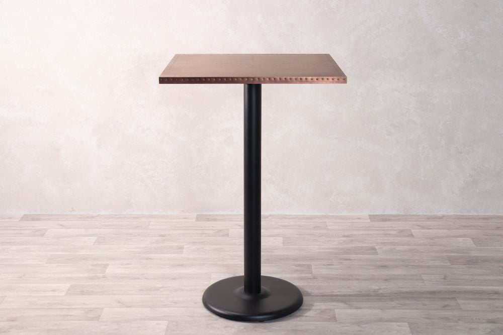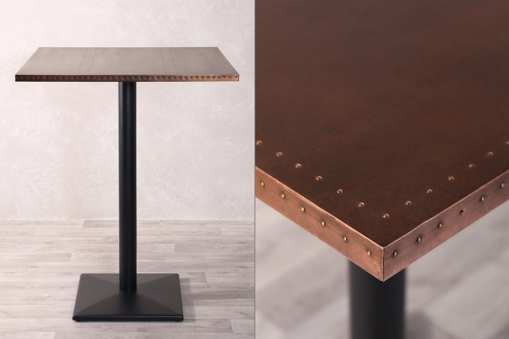 Add a stylish edge to your restaurant, bar, or café with our Copper Top Café Bar Table. These rustic tables are beautifully made with high quality copper with stud detailing on the edges. The tables can also be paired with a range of our bases that best suit your interior aesthetic.