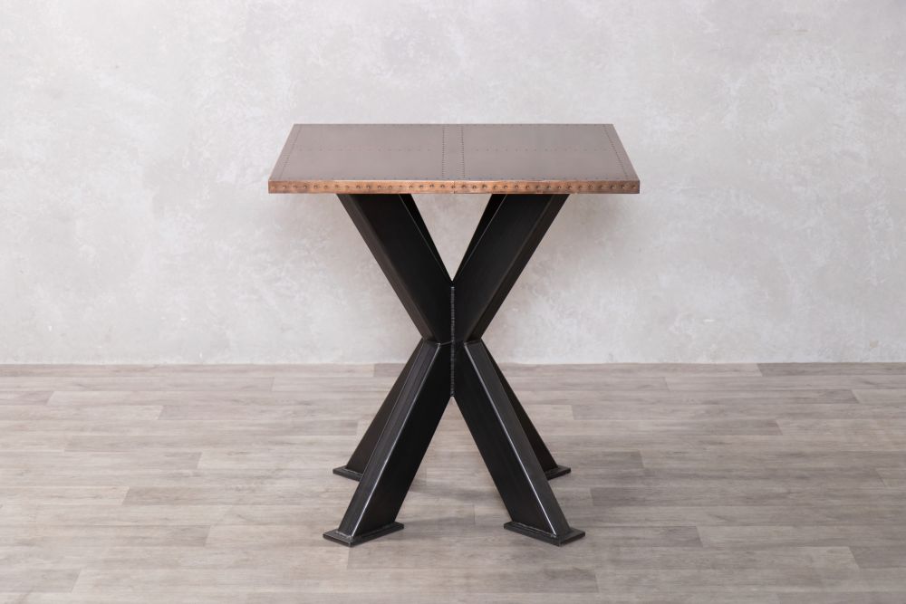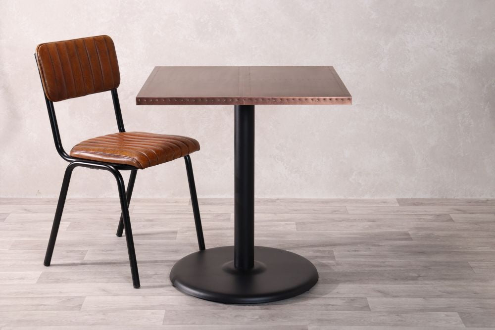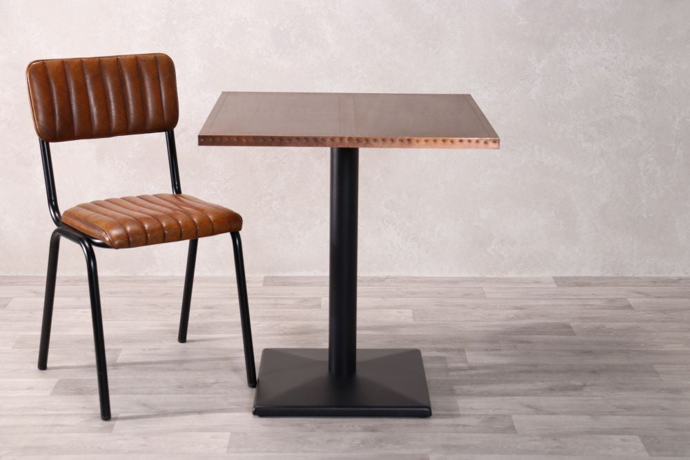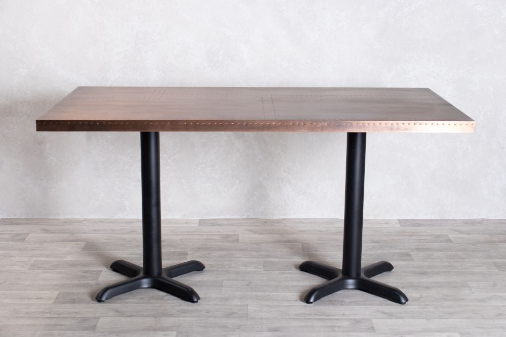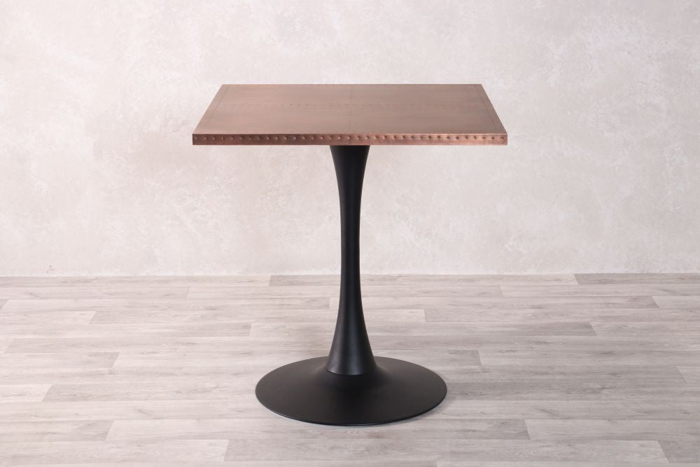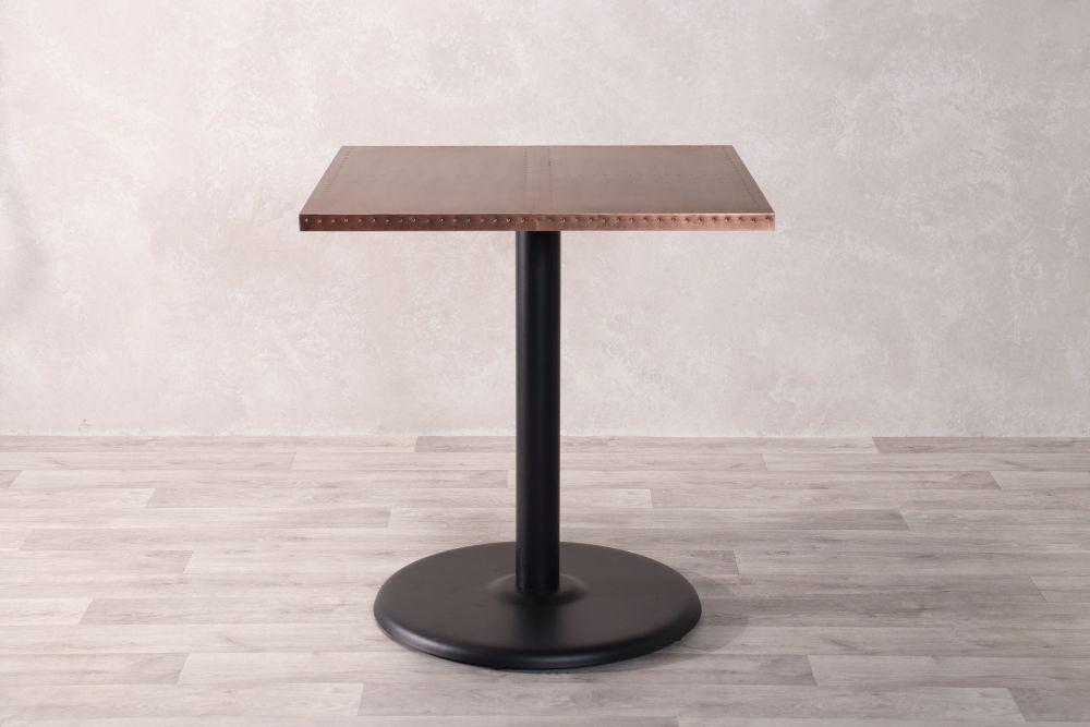 Add a stylish edge to your restaurant, bar, or café with our Copper Top Café Table. These rustic tables are beautifully made with high quality copper with stud detailing on the edges. The tables can also be paired with a range of our bases that best suit your interior aesthetic.