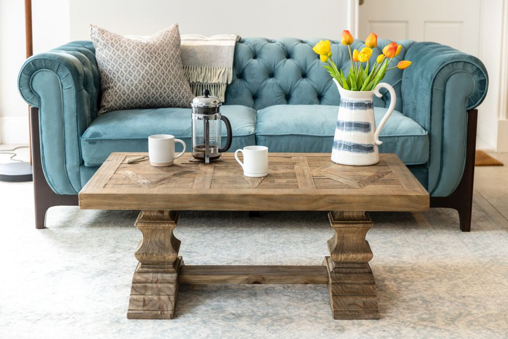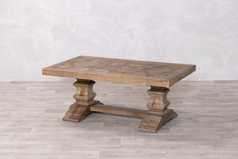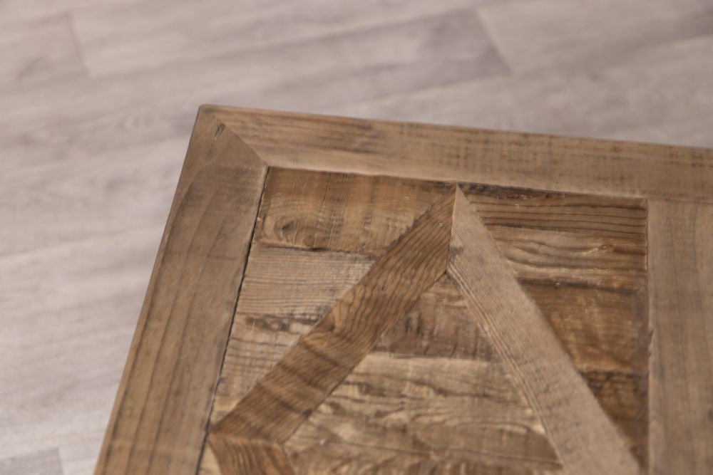 Made from reclaimed pine, the table top has a distinctive diamond and star design and boasts of gorgeous natural marks, knots and grooves. The Castle Coffee Table can be paired together with the Castle Dining Table, a beautiful, traditional style dining table for the whole family.