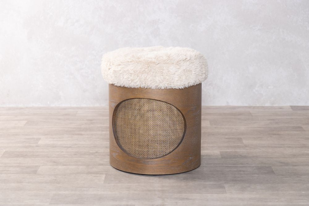 The Palermo Footstool/Side Table is a versatile statement, boasting timeless modern Mid-Century style! Choose from a faux fur or a fabric cushioned top to form a contemporary yet vintage-inspired footstool/side table. Featuring a solid wood base with large circular cutouts on either side, smoothed over and rounded for a look that’s not only sleek but comforting, too.