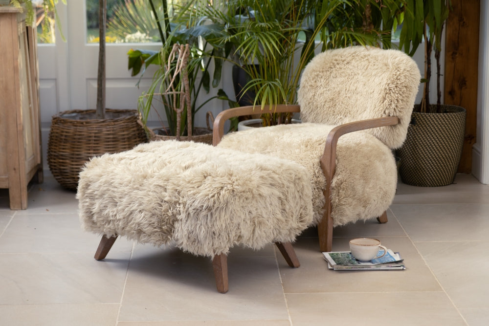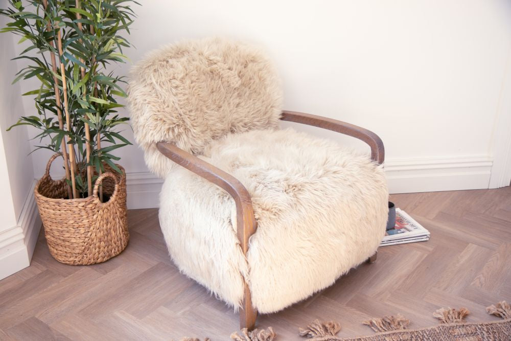 Indulge in comfort and style with the Gardena Sheepskin Range. These one-of-a-kind luxury statement pieces (sold separately) are crafted with soft long-haired genuine sheepskin, resting upon cosy, oak wood frames. Perfect for your Scandi inspired lounge, dressing room or bedroom.