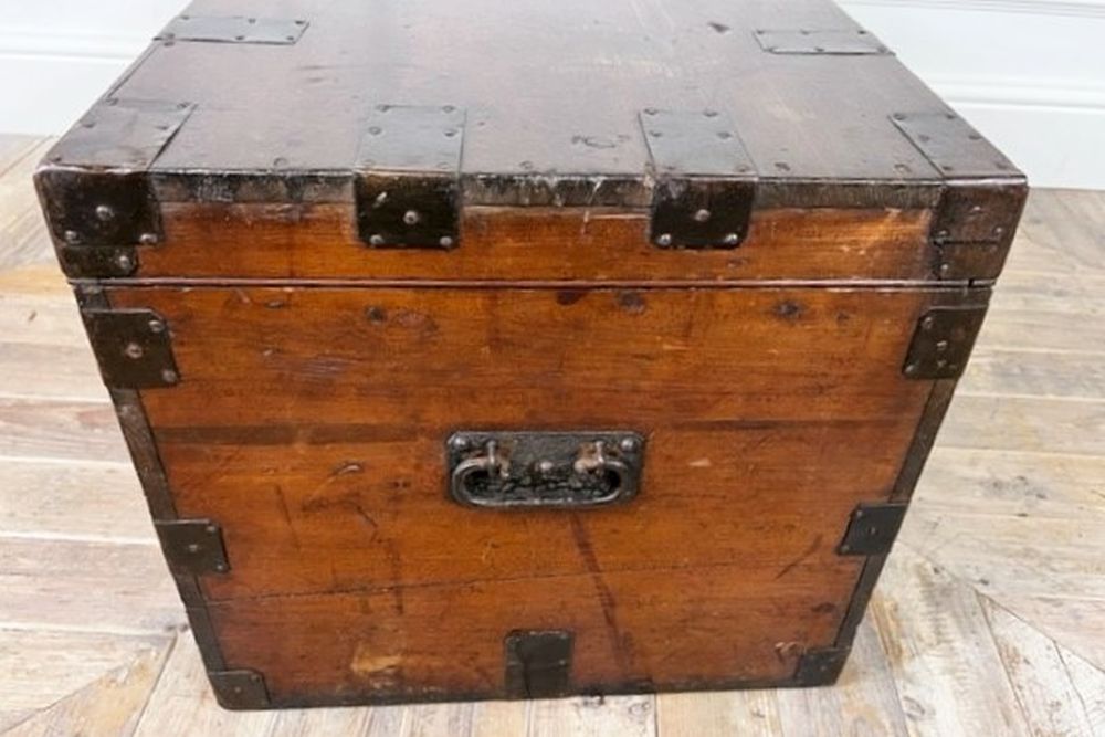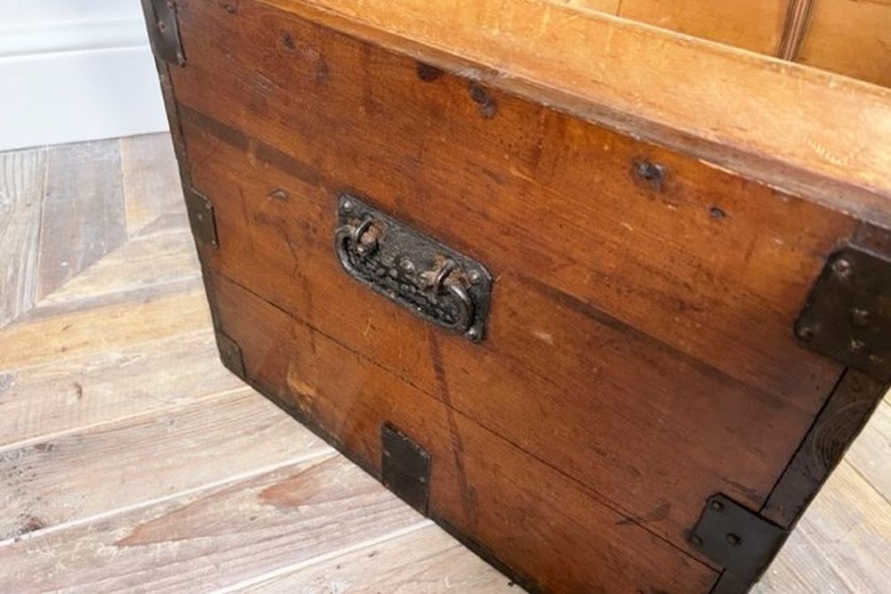 This vintage pine storage trunk has a luxurious rich brown colour and beautiful detailing. This piece has multiple uses; a perfect size to be a coffee table or a unique piece for storage in an office or a blanket chest for a bedroom. The antique look of the chest will add an element of vintage charm to any room. It has a spacious interior, providing ample space to store whatever you want inside.