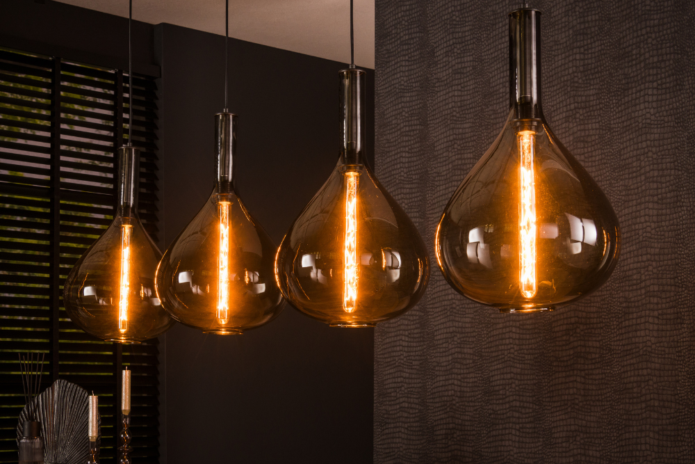 The Ariana 4 String Smoke Glass Pendant Light features four beautiful glass shades to complement your kitchen counter and dining table. The glass shades feature a black finish and provides your chosen space with gorgeous ambient lighting. The shades are also individually height-adjustable up to 150cm.