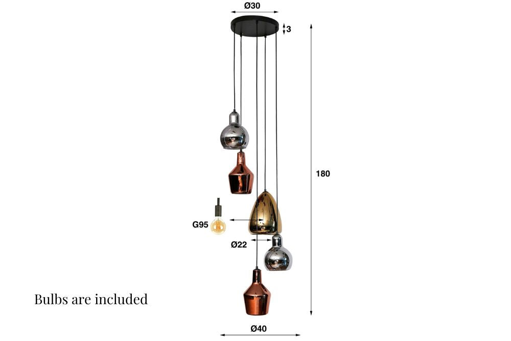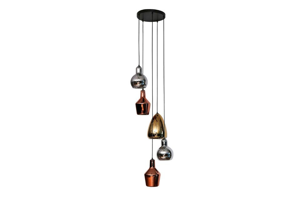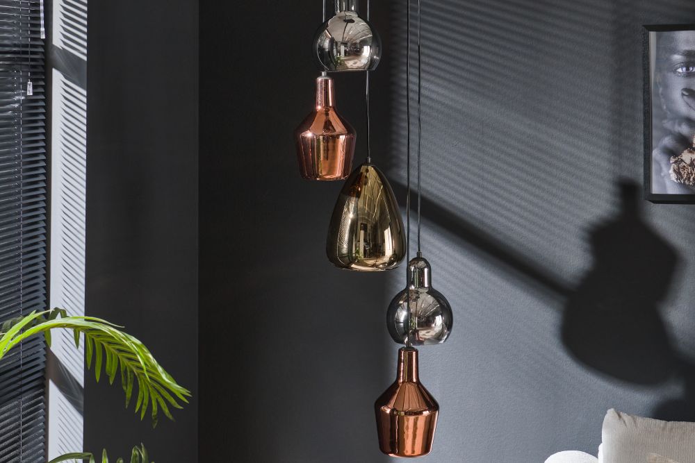 The Layla Mixed Colour Hanging Pendant Light combines an industrial charm with a touch of elegance. Its sturdy construction, multiple pendants, and decorative details make it a versatile and visually captivating statement centre lighting fixture in any space.