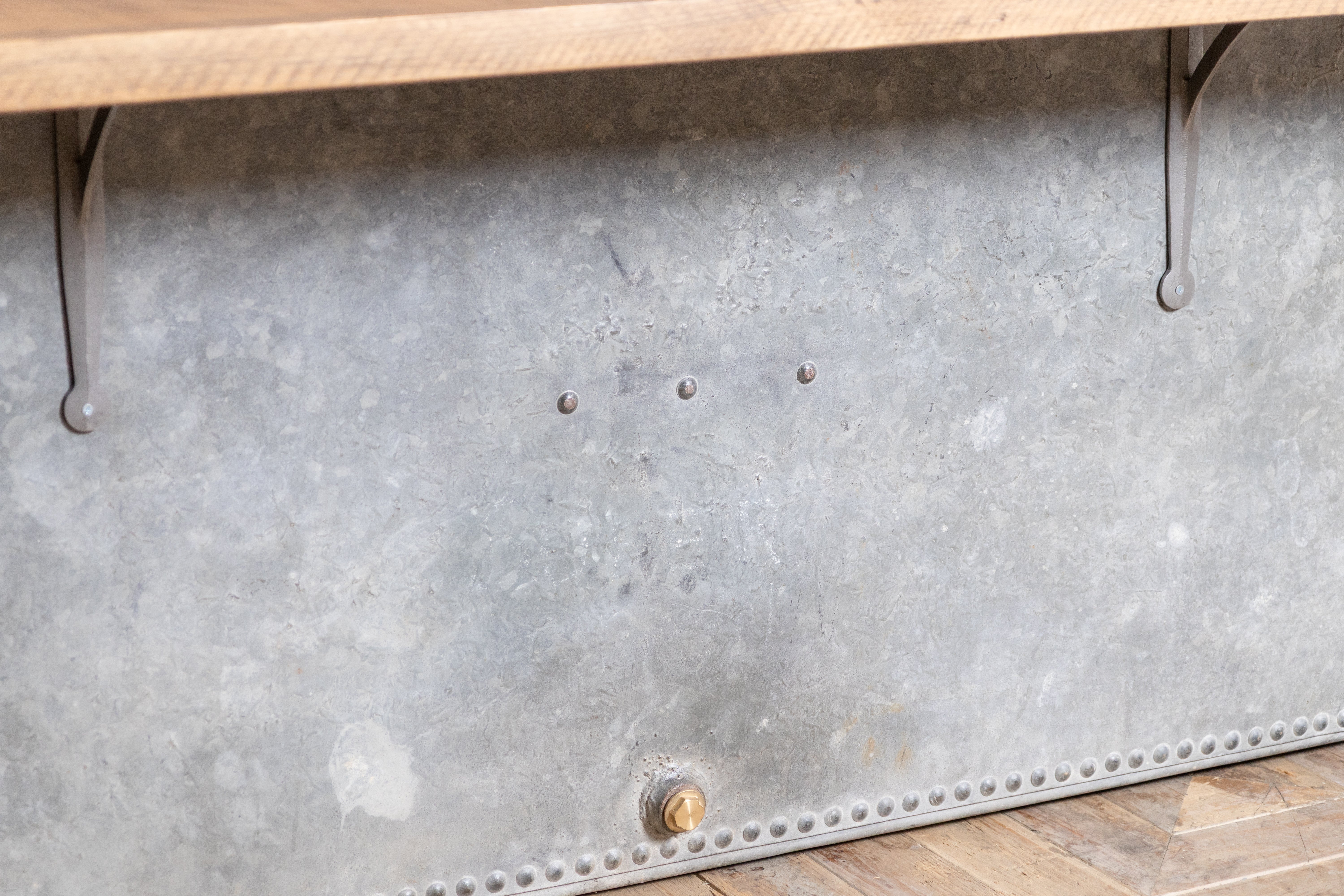 Make the ultimate statement with our stunning Olive Tree Bar Table, a quirky rectangular centrepiece with a decorative olive tree set through the middle. Made from a galvanized metal base and featuring a wooden ledge that brings natural character to the room; designed at dining height and comfortably seating 8 or more guests, it’s perfect for any modern bar or restaurant, entirely unique in every sense, and the tree can be lowered when needed for service or storage.