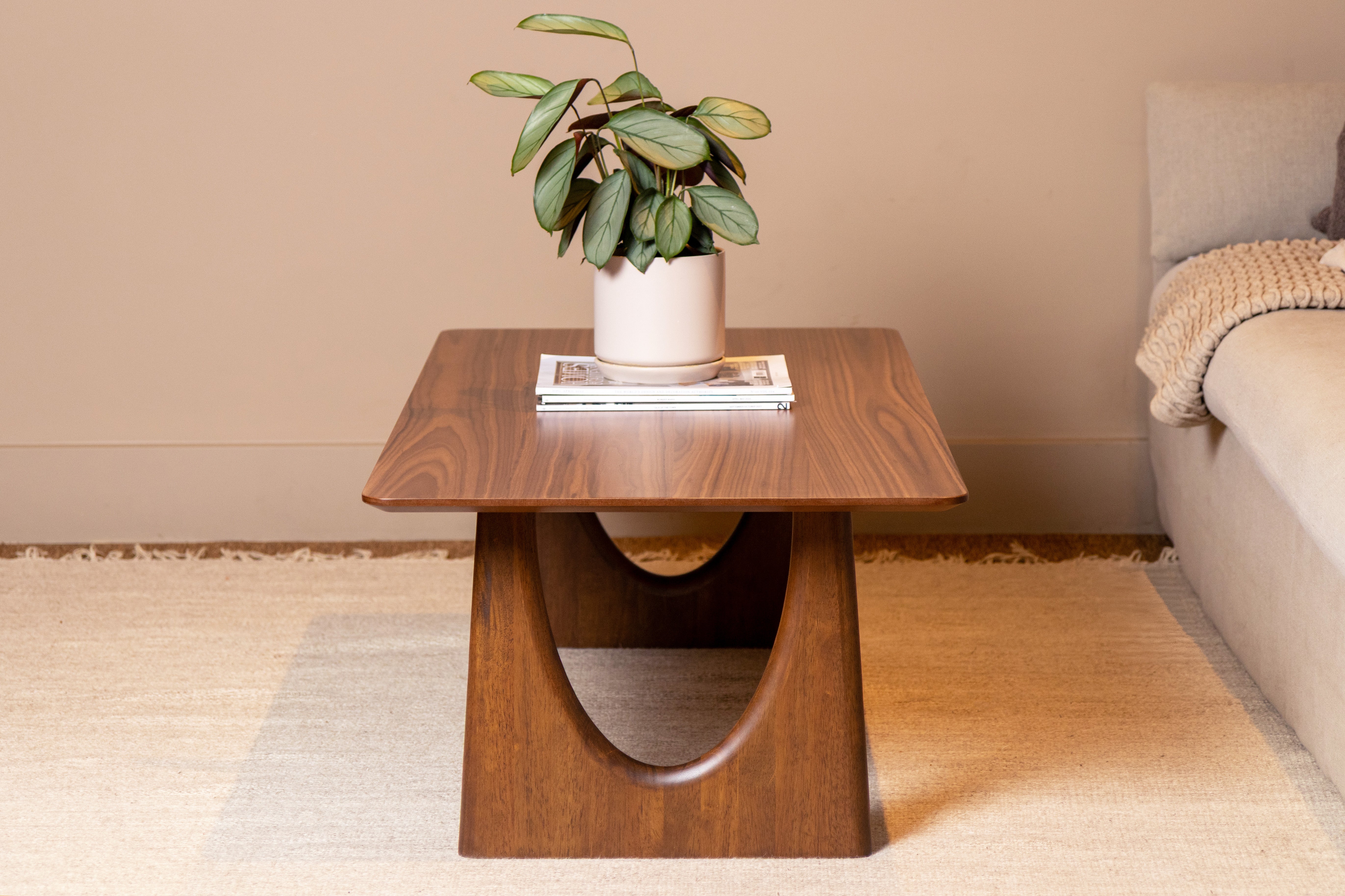The Grace Coffee Table commands attention with its bold geometric design and sculptural presence. Crafted from solid hardwood with a warm walnut finish, this substantial piece features a unique double U-shaped base that creates striking negative space and architectural interest beneath the generous rectangular tabletop. The sculptural form of the interlocking arches brings structural drama to your living space, serving as a centrepiece that grounds the room. Built for durability with clean lines and thoughtful proportions, the Grace offers ample surface area for everyday use while functioning as a statement piece that anchors your space.