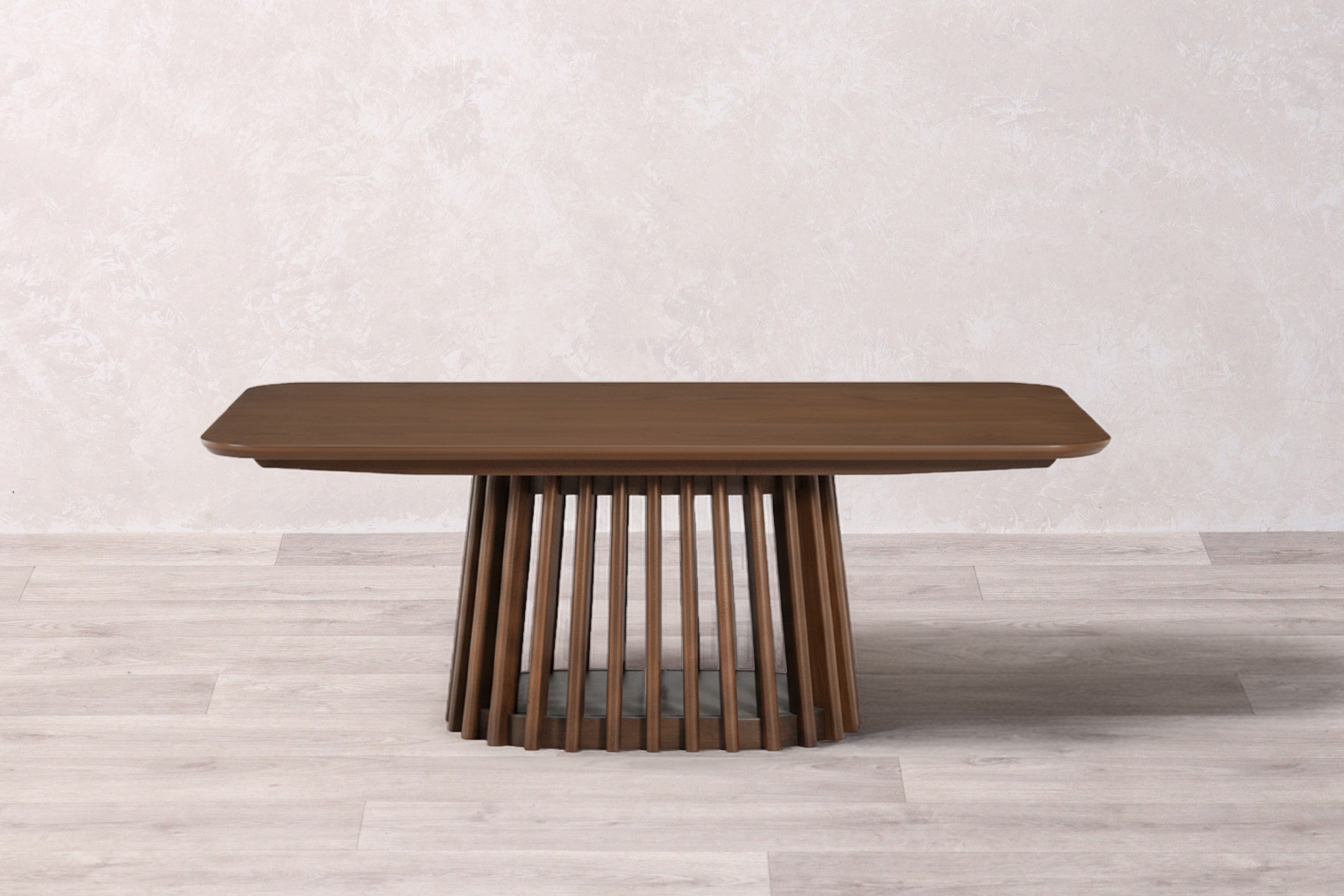 The Darcy Rectangle Coffee Table brings a unique and contemporary feel to your living space. The twin pedestal design features gently sloping wood slats which create a stunning design feature and make the table a beautiful focal point in your room. Crafted from solid hardwood in a natural finish to show the grain of the timber, this striking piece provides ample surface space for entertaining, displaying decorative items, or everyday use. The sculptural slatted pedestals add visual interest and architectural detail, while the generous rectangular top makes it both a practical and eye-catching centrepiece for your lounge or living area.