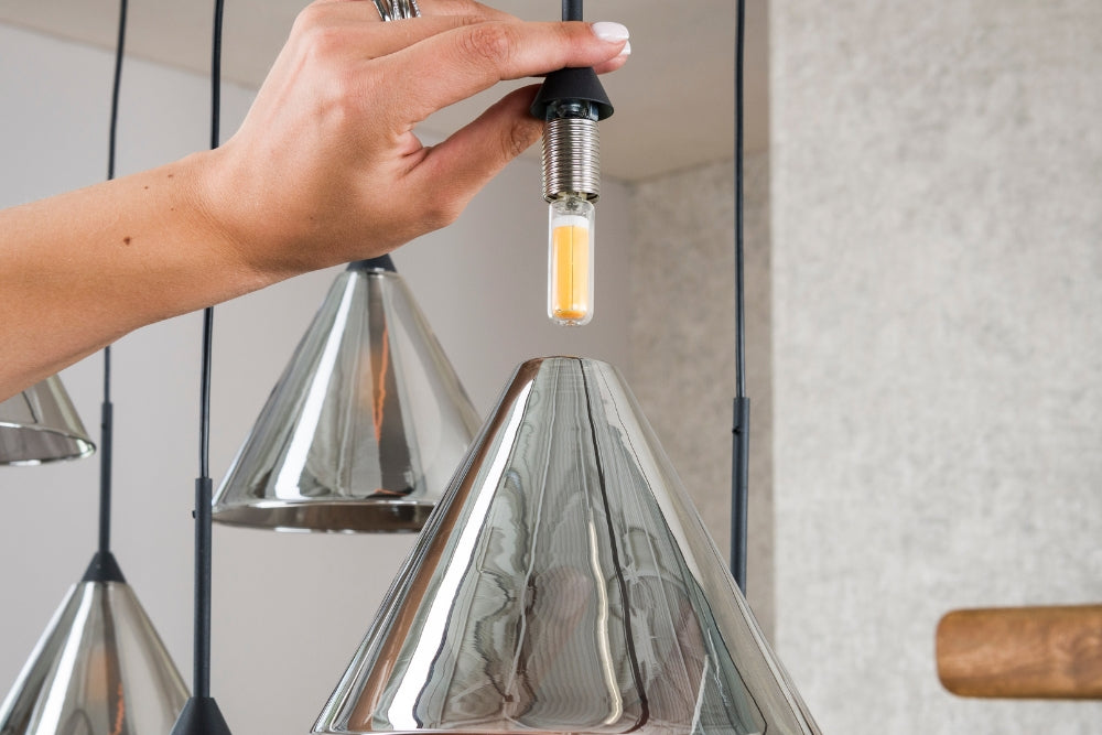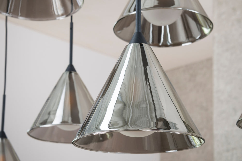 The Lucia 9 String Cone Pendant Light brings instant character to any space with its striking arrangement of seven smoke glass shades that create a dramatic focal point. Each shade can be individually adjusted in height up to 150 cm, allowing you to customise the look to perfectly suit your room and create your own unique lighting display. The practical screw-fit design of each glass shade makes changing bulbs quick and straightforward, whilst the gorgeous smoky tint adds warmth and depth to the light.