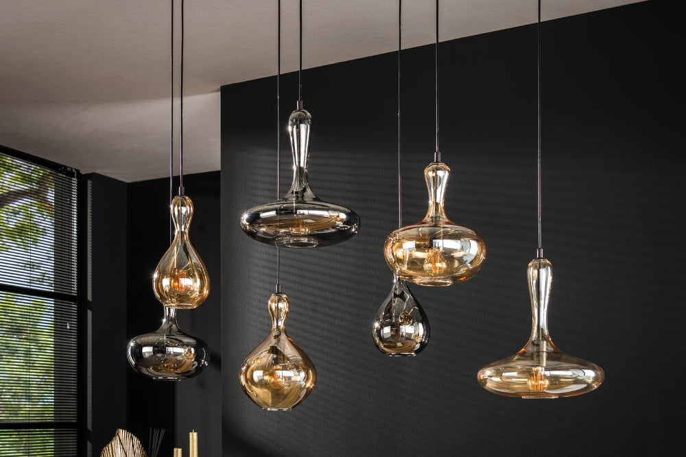 Elevate your space with the stunning Lux 7 String Pendant Light, featuring seven elegantly crafted glass shades inspired by the graceful curves of a carafe. The shades come in two complementary colours to add visual interest and variation, set against an arctic black fixture. This statement piece offers versatility with individually height-adjustable shades (up to 150 cm), allowing you to create the perfect lighting arrangement for your home.