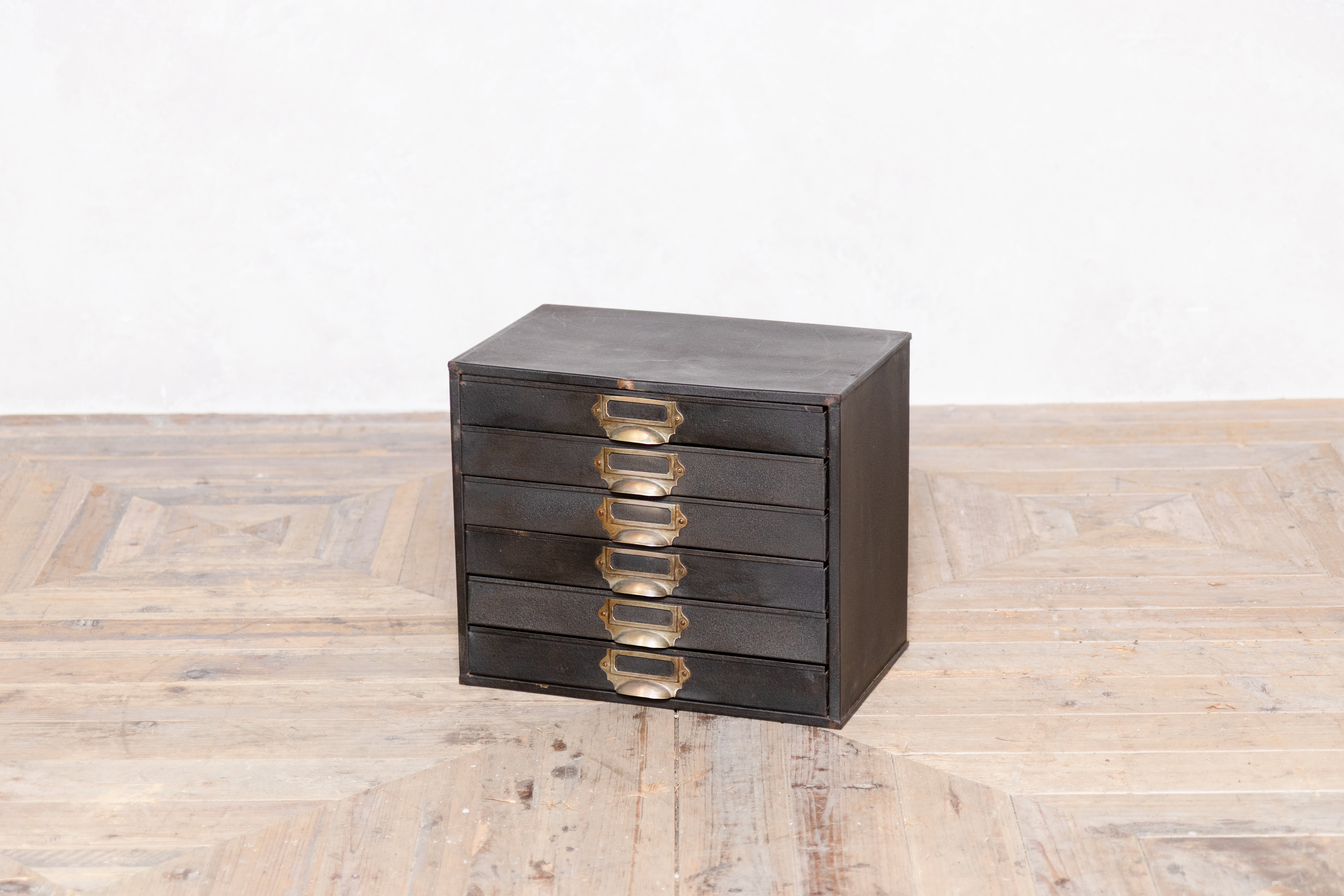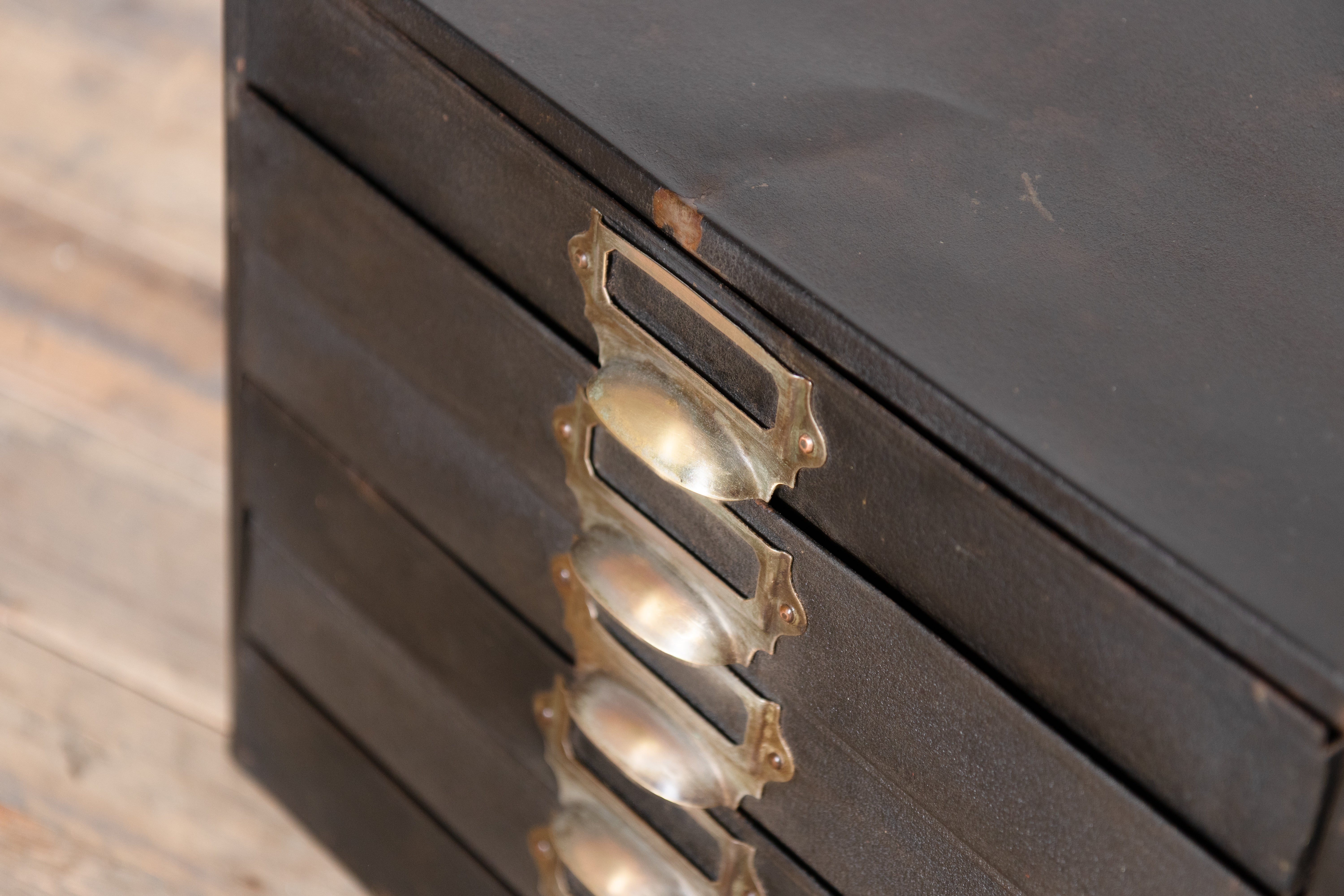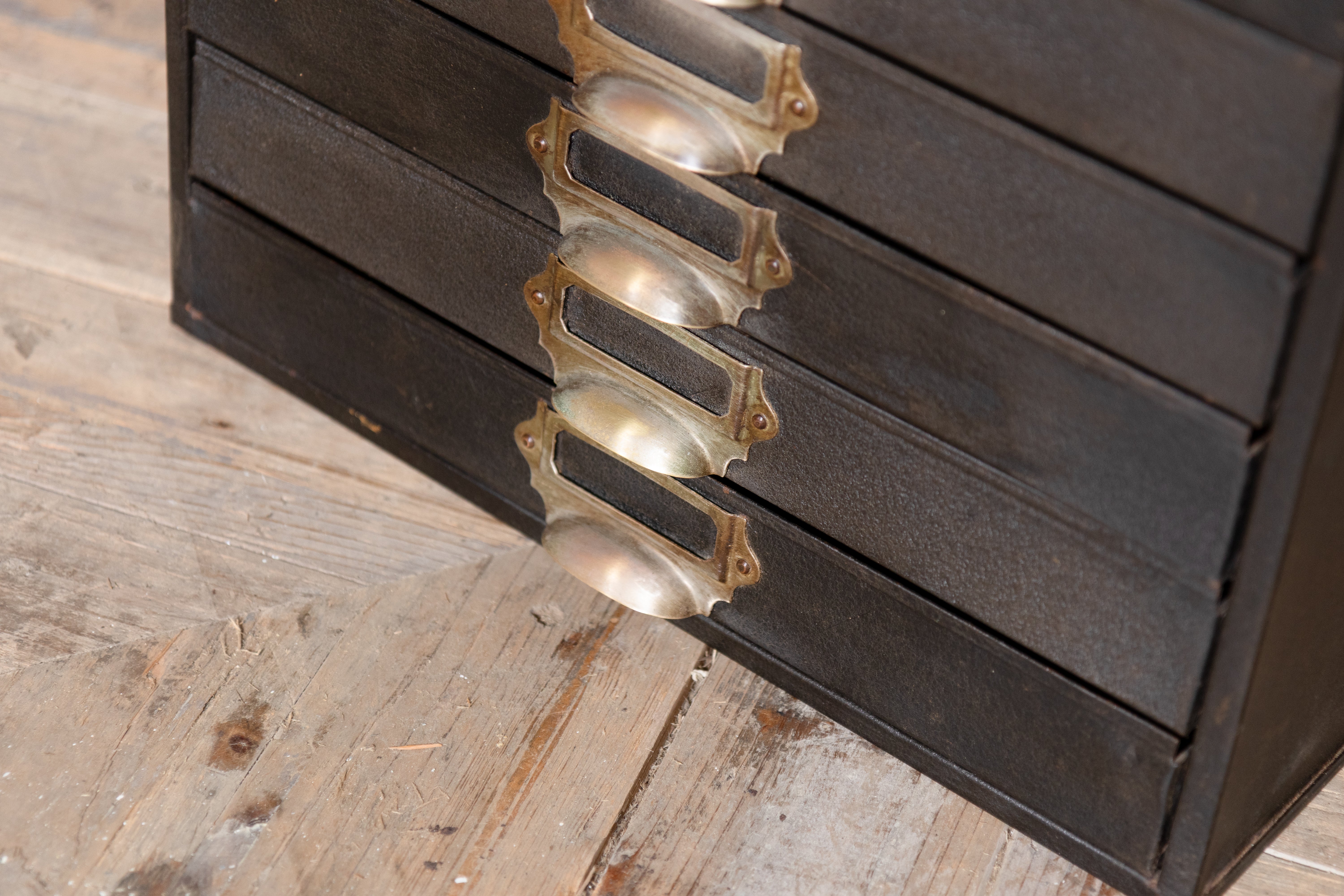 Crafted from durable metal in the 1930s, these Vintage Metal File Drawers feature compartments that are both functional and decorative, ideal for organising small tools, papers, or collectables. Timeworn character is evident throughout, with honest wear and tear and chips to some drawers that reflect nearly a century of use. These industrial-style filing drawers showcase the distinctive patina of aged metal, creating a statement piece with authentic vintage appeal.