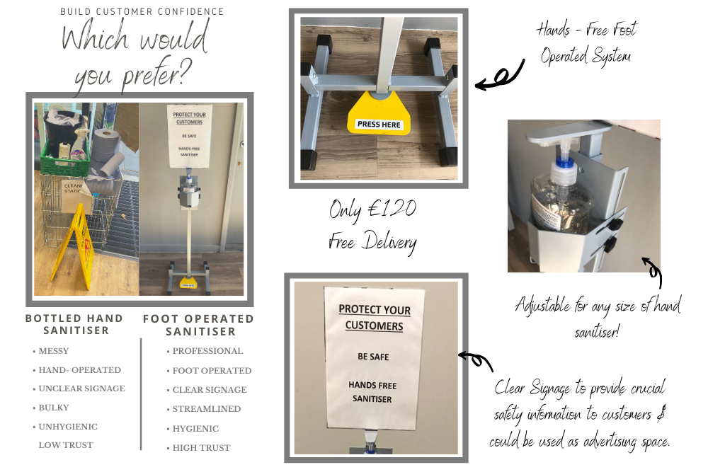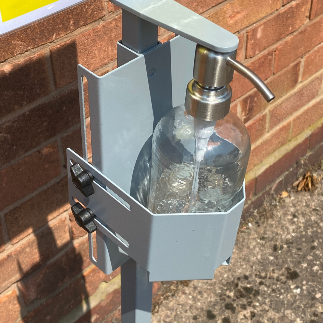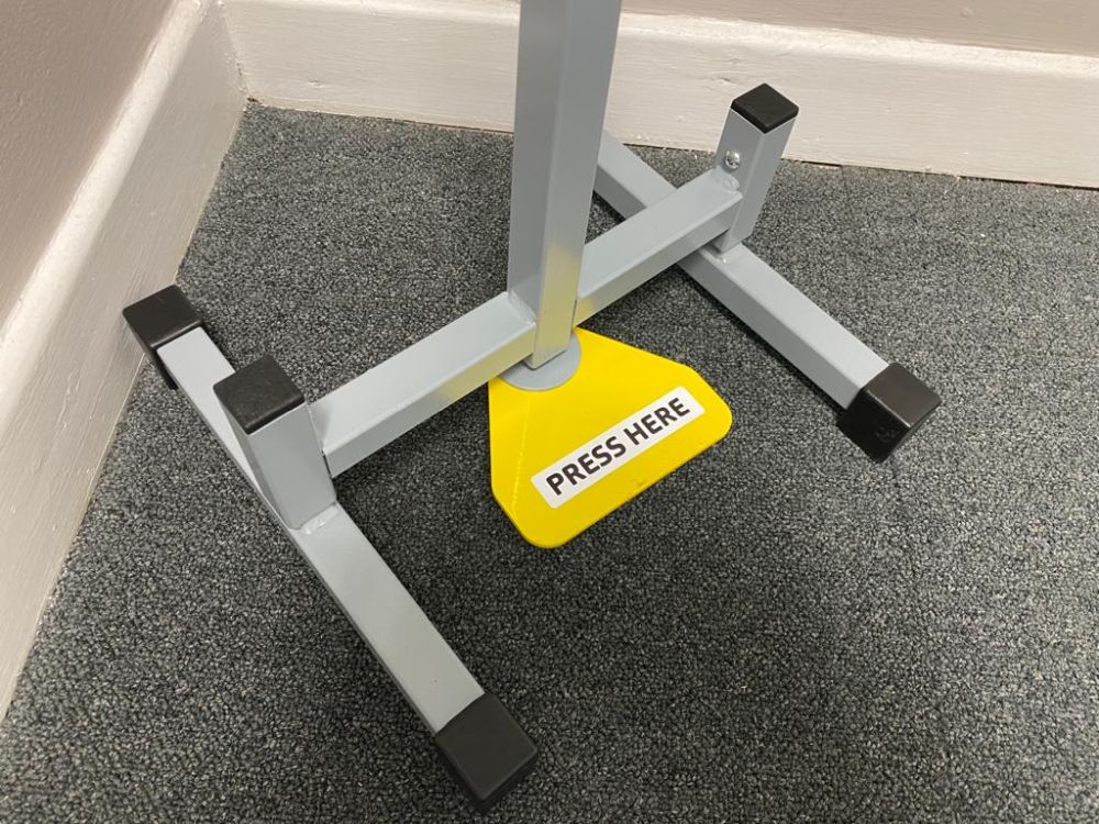 Make hand sanitising easy and readily accessible with our Foot Operated Sanitiser Station. Featuring a fully adjustable unit made from powder-coasted steel, this sanitiser station is perfect for any commercial venue looking to effectively eliminate germs including Coronavirus. Simply place the bottle in the holder, adjust it to the top of the stand and press with your foot on the pedal to release the hand sanitiser or soap. See the video below for demonstration.