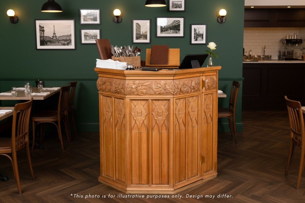 This outstanding solid English oak church pulpit showcases exquisite British craftsmanship with detailed carvings that reflect traditional design. The substantial piece features a single side door that opens to reveal interior space, making it as functional as it is visually striking. Originally used for delivering sermons and readings in a place of worship, this pulpit offers incredible versatility for modern uses including a unique speaker's box, DJ booth, display stand, or statement furniture piece in homes and venues. Whether you're looking to preserve a piece of religious heritage, create an unconventional focal point in a creative space, or simply appreciate fine woodwork and historical furniture, this church pulpit brings character that cannot be replicated.