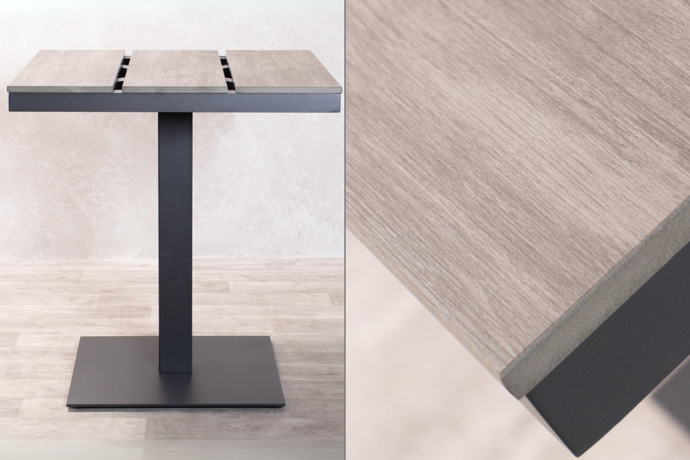 The Milan Outdoor Square Pedestal Table is a classic addition to any home garden or outdoor commercial space. The light grey slatted polywood top rests beautifully on a sturdy square aluminium base, a functional yet contemporary and visually engaging combination. Made from UV-stabilised, waterproof aluminium, this table is built to withstand the elements and the test of time, whilst maintaining its modern look for your home or commercial space.