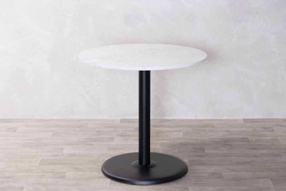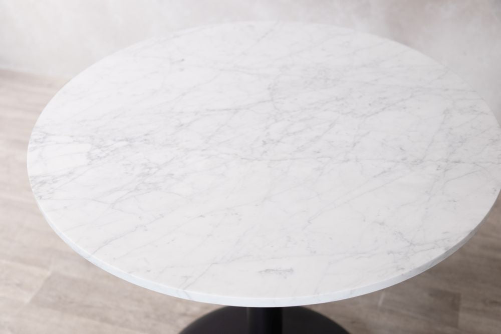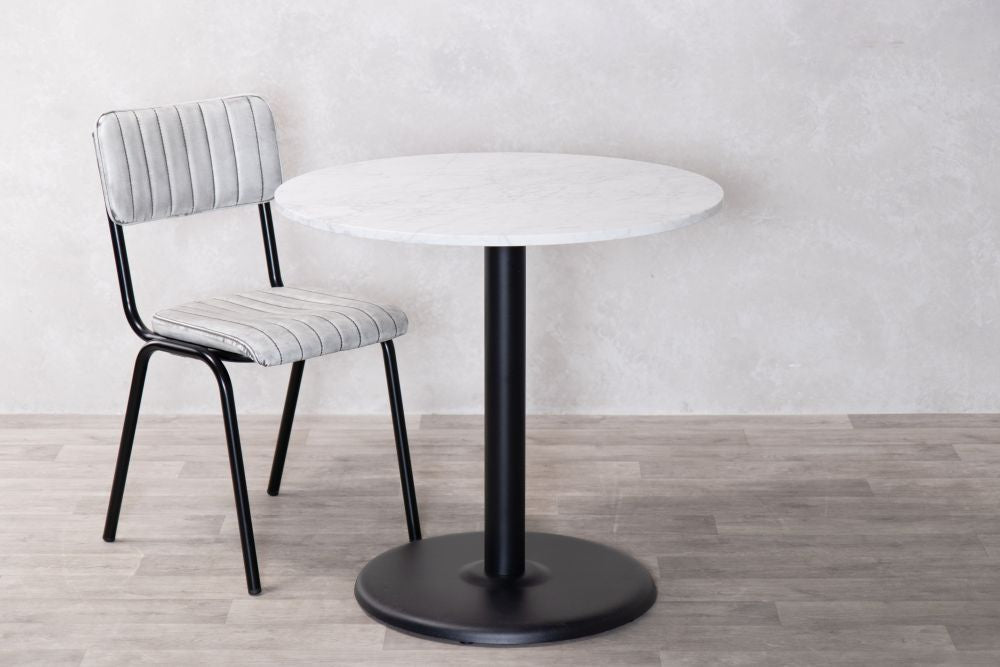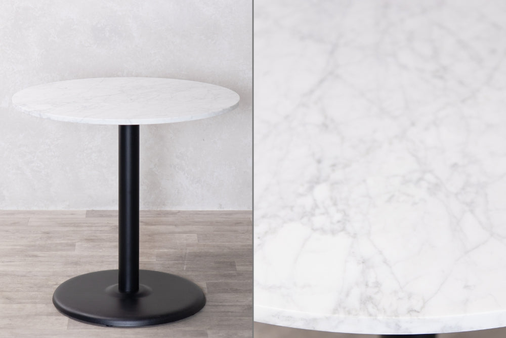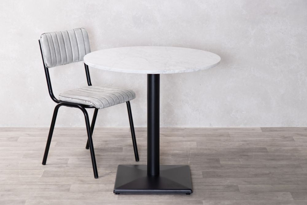 The Italian Carrera Marble Round Café Table Range will add refined luxury to your bar or restaurant with its sleek, versatile shape and its sophisticated, contrasting colourways. Customise your Carrera to complement your interior style by choosing from a round or square marble tabletop, a round or square hard-wearing steel base that features a matte finish, and finally, café or bar table height.