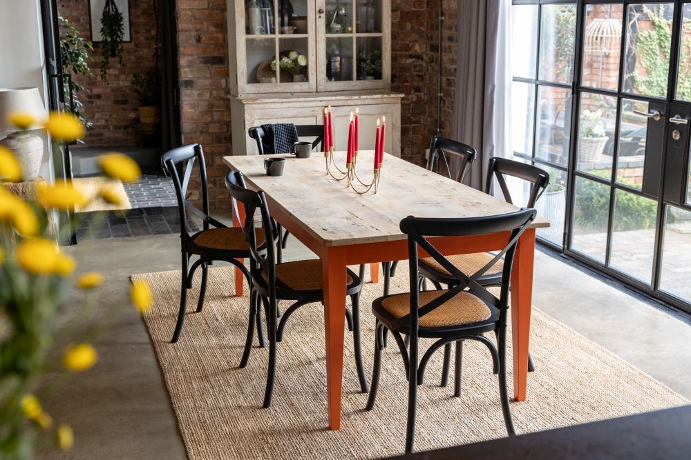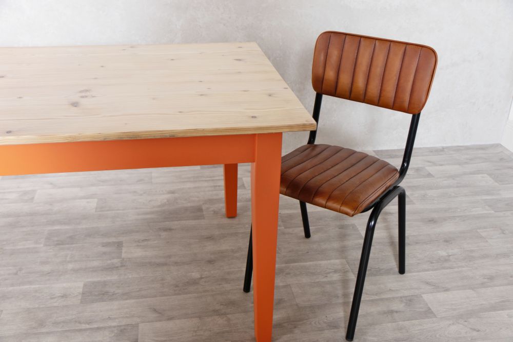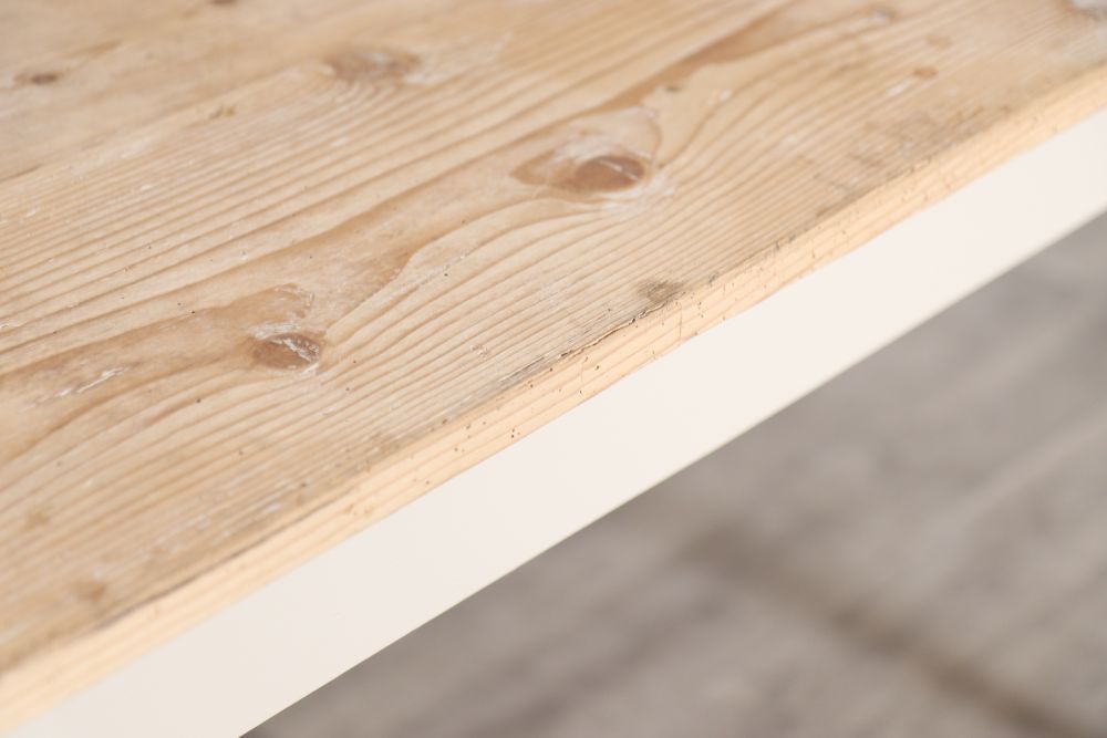 Sip a cup of tea on the Boden Bespoke Pine Kitchen Table. If you are looking for characterful furniture with remarkable imperfections like knots, marks, scratches and ring marks that portray the real history of the timber, then this table is just for you. The timber used is over 100 years old, each with their own unique marks, meaning no two tables are the same. The table top was once used by a large cheese company. There are ring marks that show where the cheese has been stored for many years.