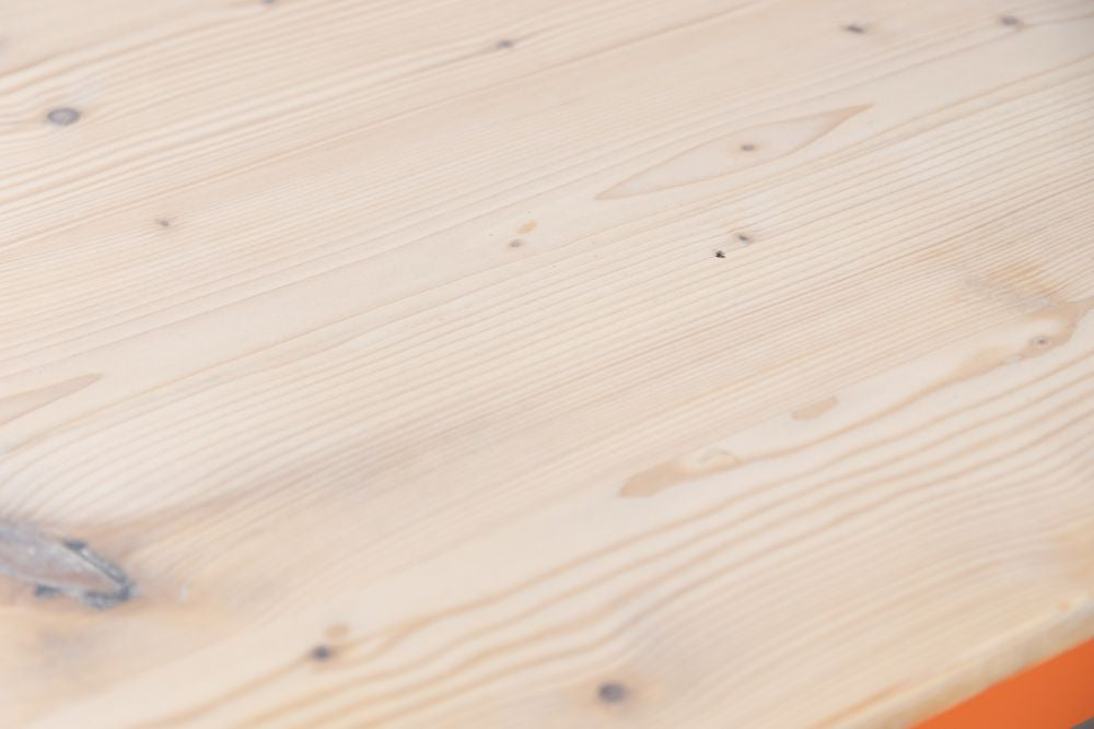 The tabletops are made from reclaimed timber, therefore the wear and tear of the tabletops will vary for each table.