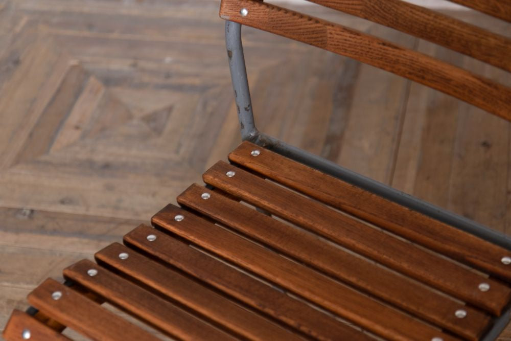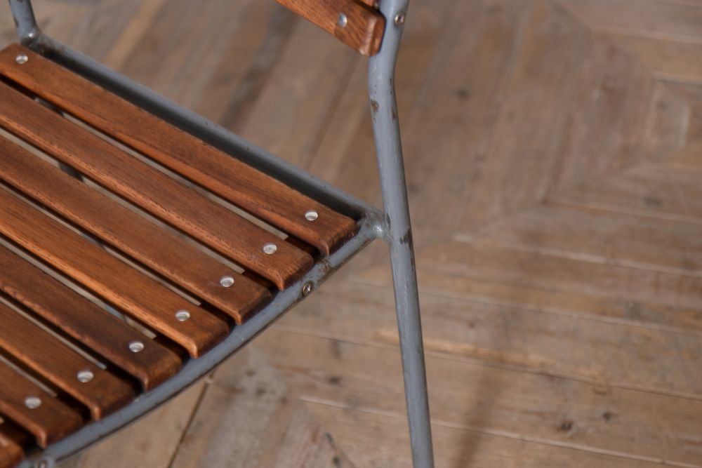 Elevate your space with the understated charm of our Cox Stacking Chairs, a staple of vintage industrial design. Built with robust metal frames and wooden slatted seats, these chairs are as stylish as they are functional. Their compact stacking feature makes them easy to store, perfectly balancing efficiency and timeless appeal. Ideal for versatile spaces such as cafe’s or contemporary dining spaces, these chairs add character while meeting everyday needs.