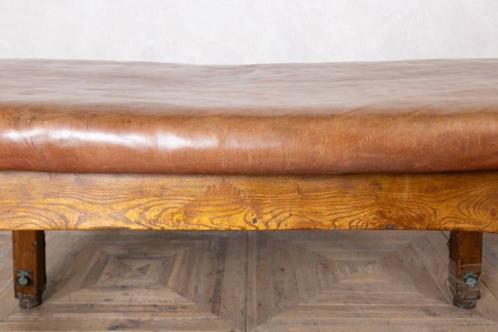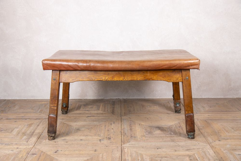 Transform your quirky restaurant, bar, or pub with the Vintage 1940’s Leather top Gym Bench. Crafted with timeless charm, this bench boasts a full leather top that exudes luxury and durability. Its adjustable feet ensure stability on any surface, making it versatile for various settings.