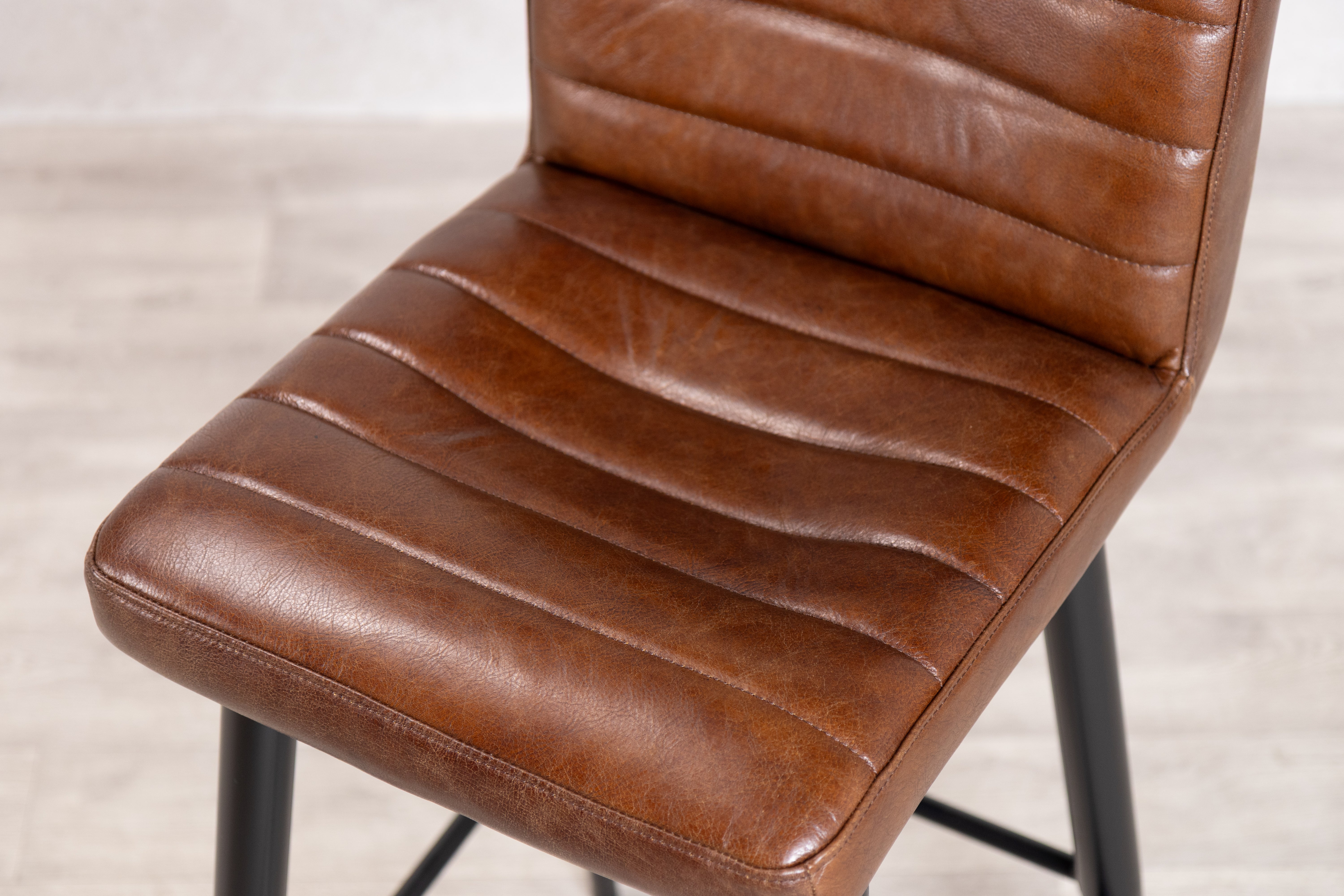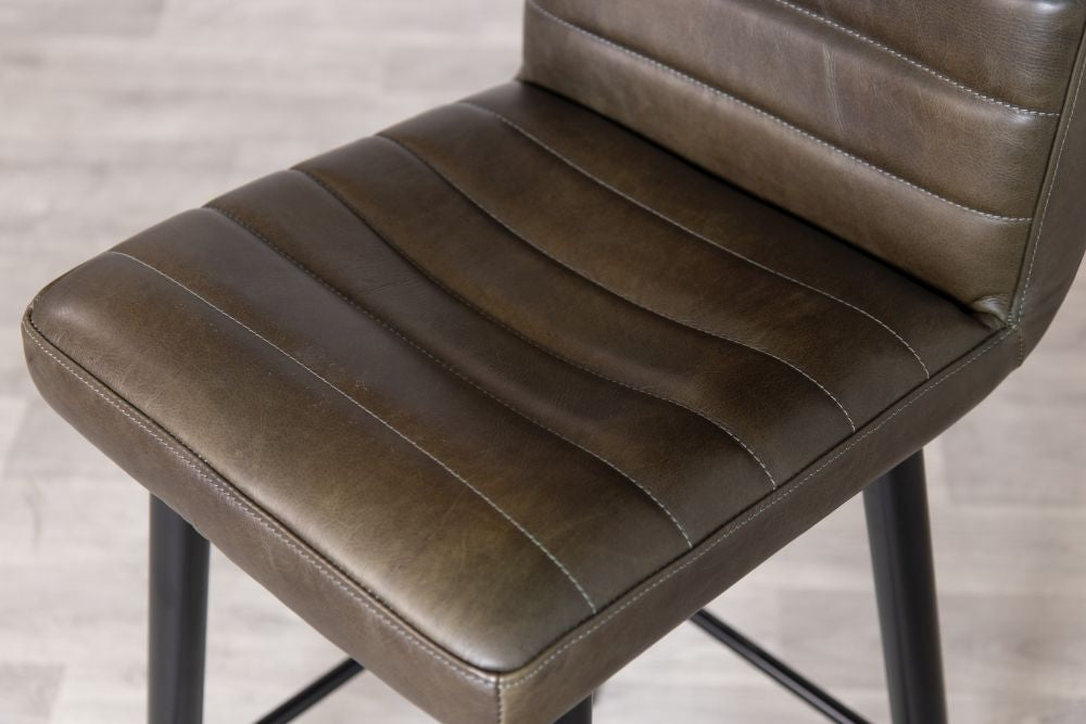 Made in the UK, our Genesis Stool oozes sophistication and contemporary style. Upholstered in rich, genuine leather, this stool features ribbed stitching and carries an element of vintage charm.