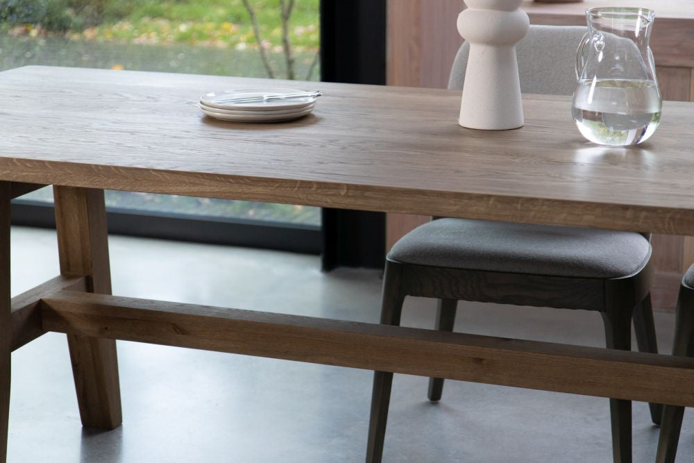 Our Henley Oak Dining Table is a classic amongst contemporary oak dining tables. This modern oak table has 'A' shaped legs connected by two stretchers, creating a deconstructed look that is perfect for modern dining spaces. The table has been handcrafted from high-quality oak which will last for years to come.