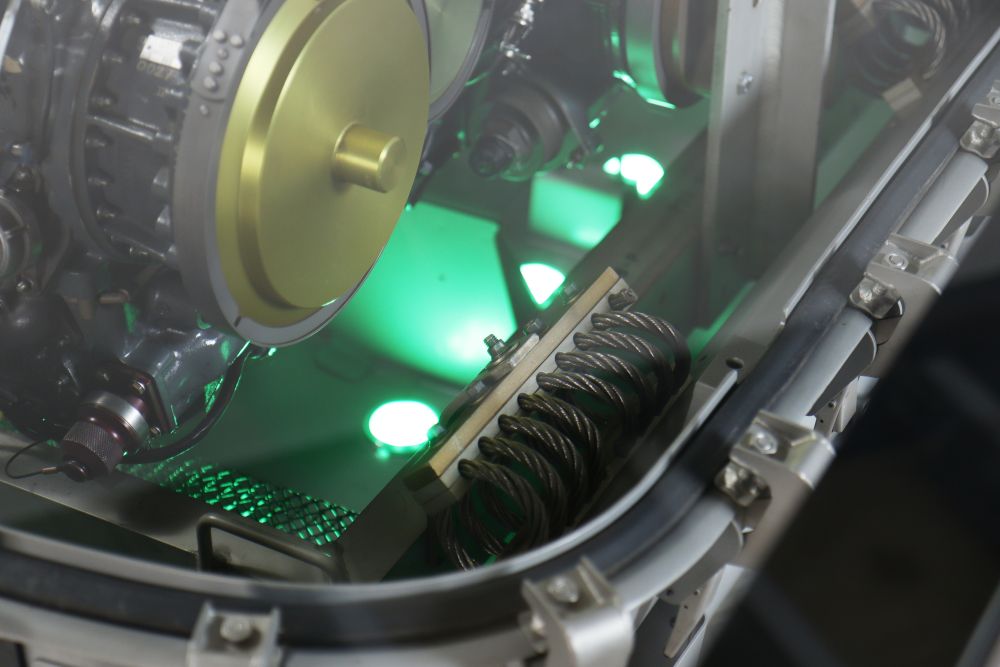 Handcrafted in house, the gear box is held in a hard-wearing aluminium pod with a 10mm tempered glass top supported by an aluminium frame. This table combines ample amounts of history and modern industrialism with the LED lights that are imbedded into the pod that has multicoloured flash and dimming effects. The LED lights are also rechargeable.