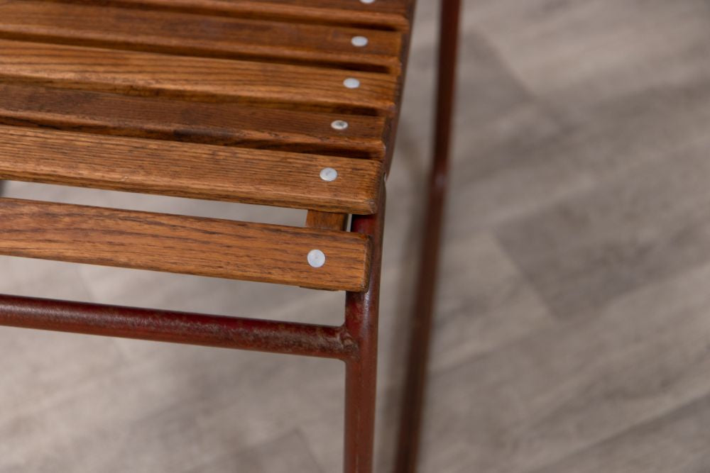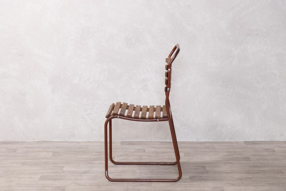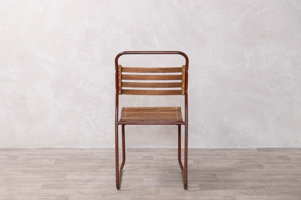 Stacking chairs are a favourite of businesses, especially food establishments, as they conveniently stack away when not needed. This makes them ideal for keeping as spares and bringing out during busy periods. These chairs are full of charm as the paint has been worn away and rusted in places, adding to their vintage industrial appearance.