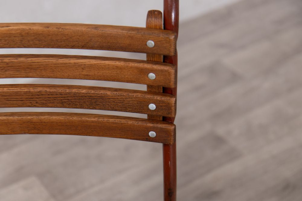 These chairs have been used so therefore may feature signs of wear and tear. The paint has been worn away and rusted in places, adding to their vintage industrial appearance.