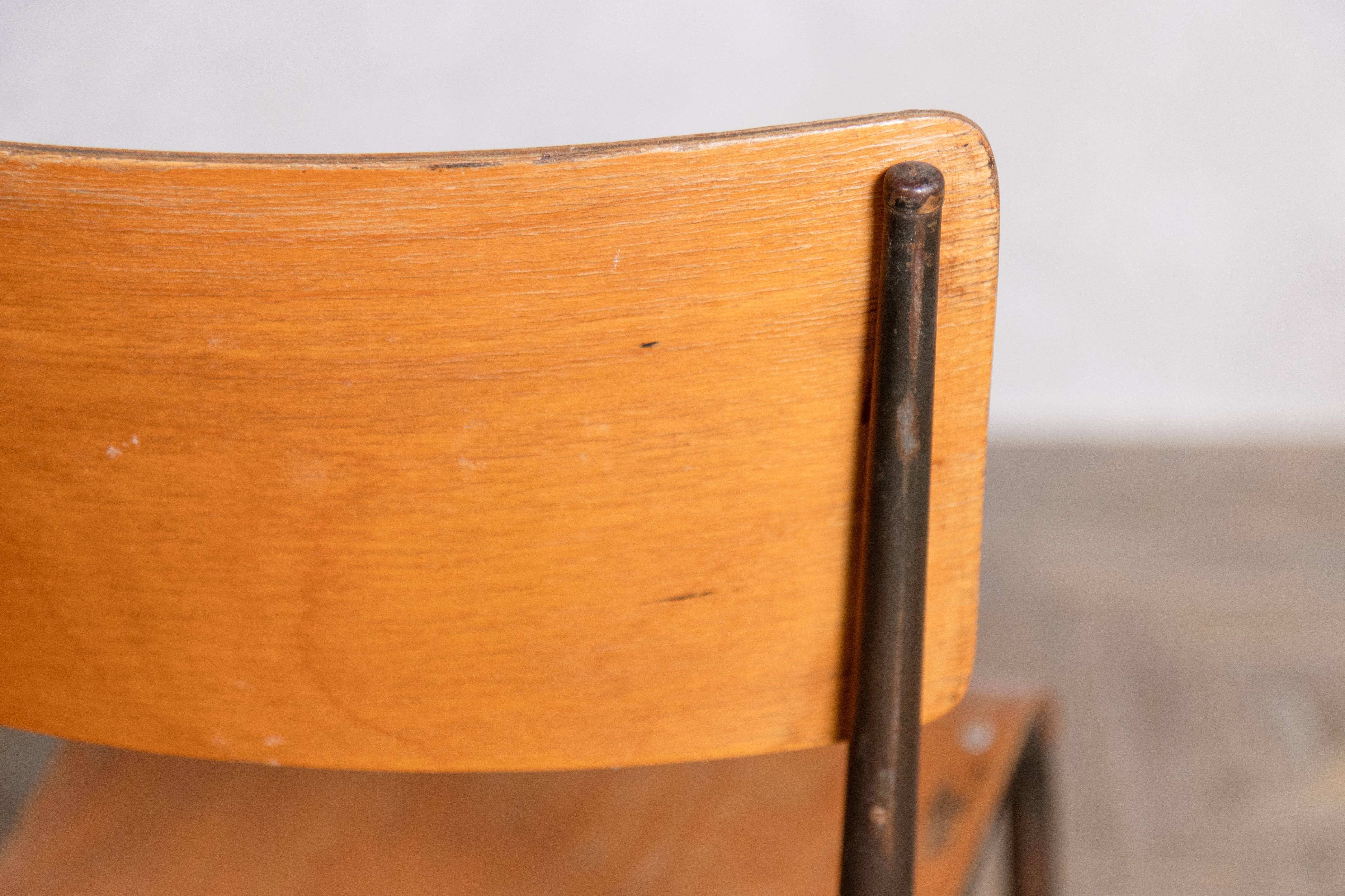 Featuring slatted wooden seats and a steel frame with a distressed finish, these classic stacking chairs bring authentic industrial character to your space. The warm wooden finish and worn steel frame enhance their mid-century industrial appeal, while creating a warm and inviting atmosphere.